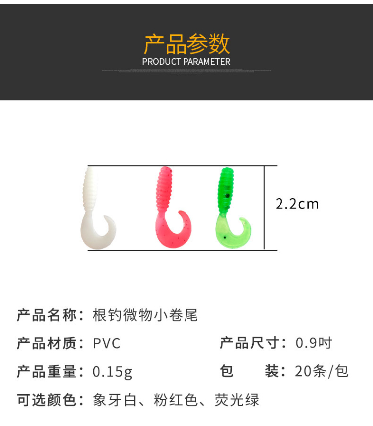 Dongding Microtail Worm 미니 초소형 루어 낚시 Pegasus Sunfish Green Slight Lure 소프트 미끼스토어 가기