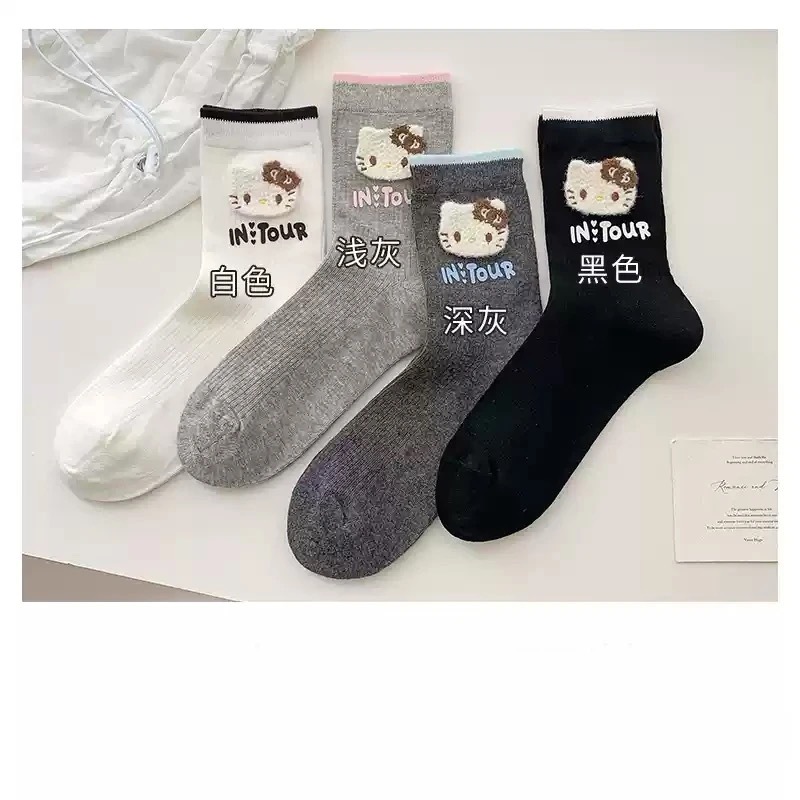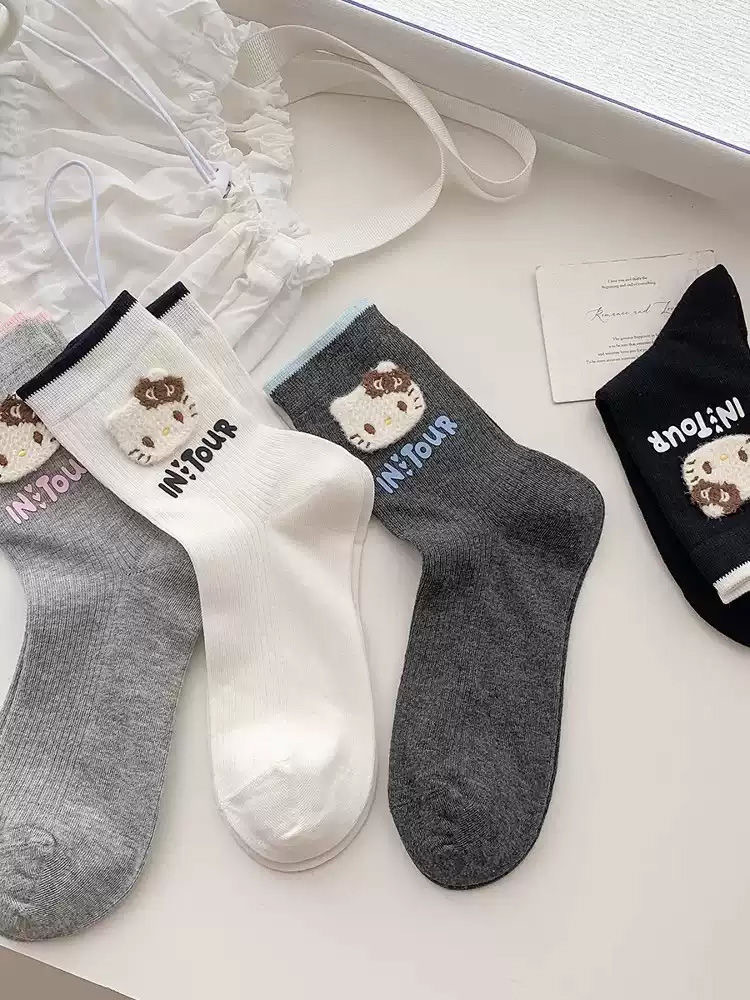 봄과 여름 편지 쌓인 양말 kt 고양이 양말 여성 한국 달콤한 귀여운 만화 일본 학생 튜브 양말