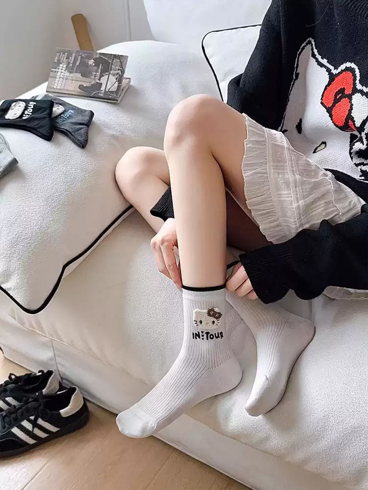 봄과 여름 편지 쌓인 양말 kt 고양이 양말 여성 한국 달콤한 귀여운 만화 일본 학생 튜브 양말스토어 가기