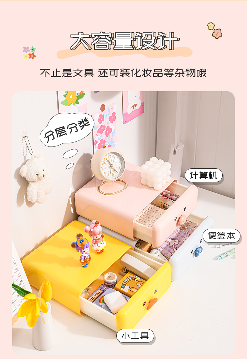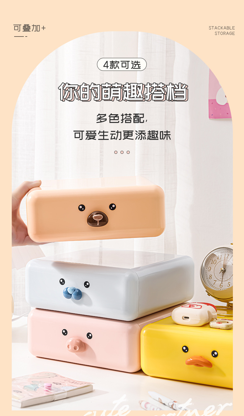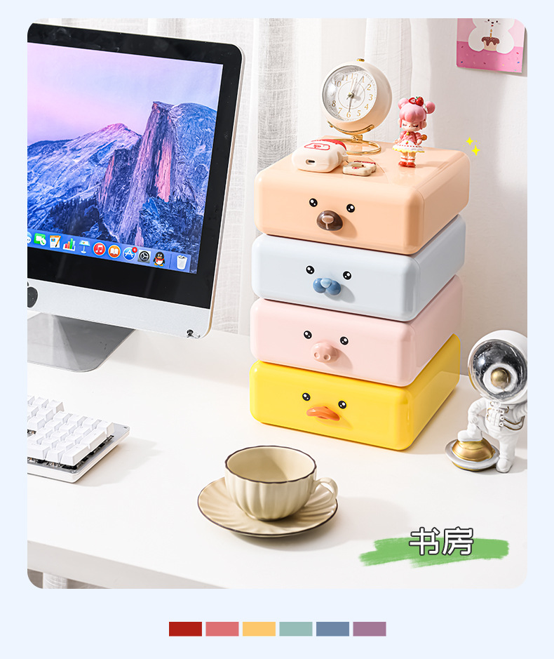 귀여운 데스크탑 수납함 서랍형 가정용 수납장 사무실 책상 문구 잡화 화장품 수납함