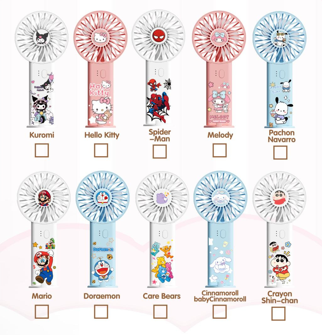국경 간 인기 Sanrio 스파이더 맨 만화 소형 팬 USB 충전 휴대 전화 홀더가있는 편리한 휴대용 팬