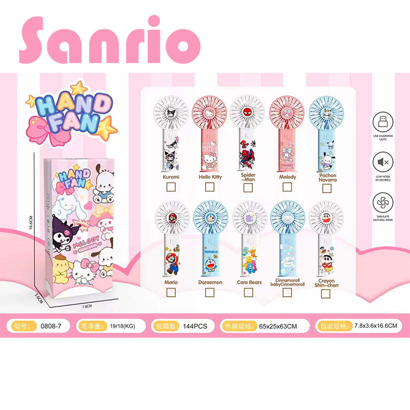 국경 간 인기 Sanrio 스파이더 맨 만화 소형 팬 USB 충전 휴대 전화 홀더가있는 편리한 휴대용 팬스토어 가기