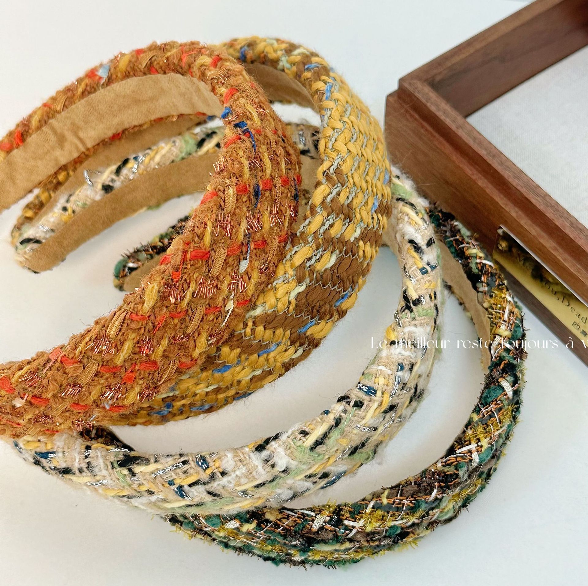 한국 스타일 가을 겨울 분위기 여성용 작은 향기로운 트위드 머리띠 2024 새로운 복고풍 하이 크라운 머리띠 헤어 액세서리