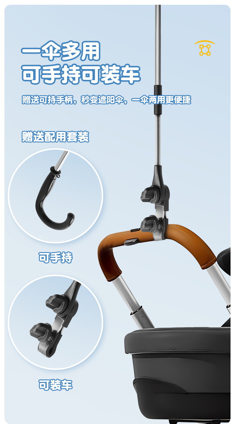 새로운 티타늄 실버 아기 세발자전거, 범용 유모차, 우산, 유모차, 자외선 차단제, 태양 우산