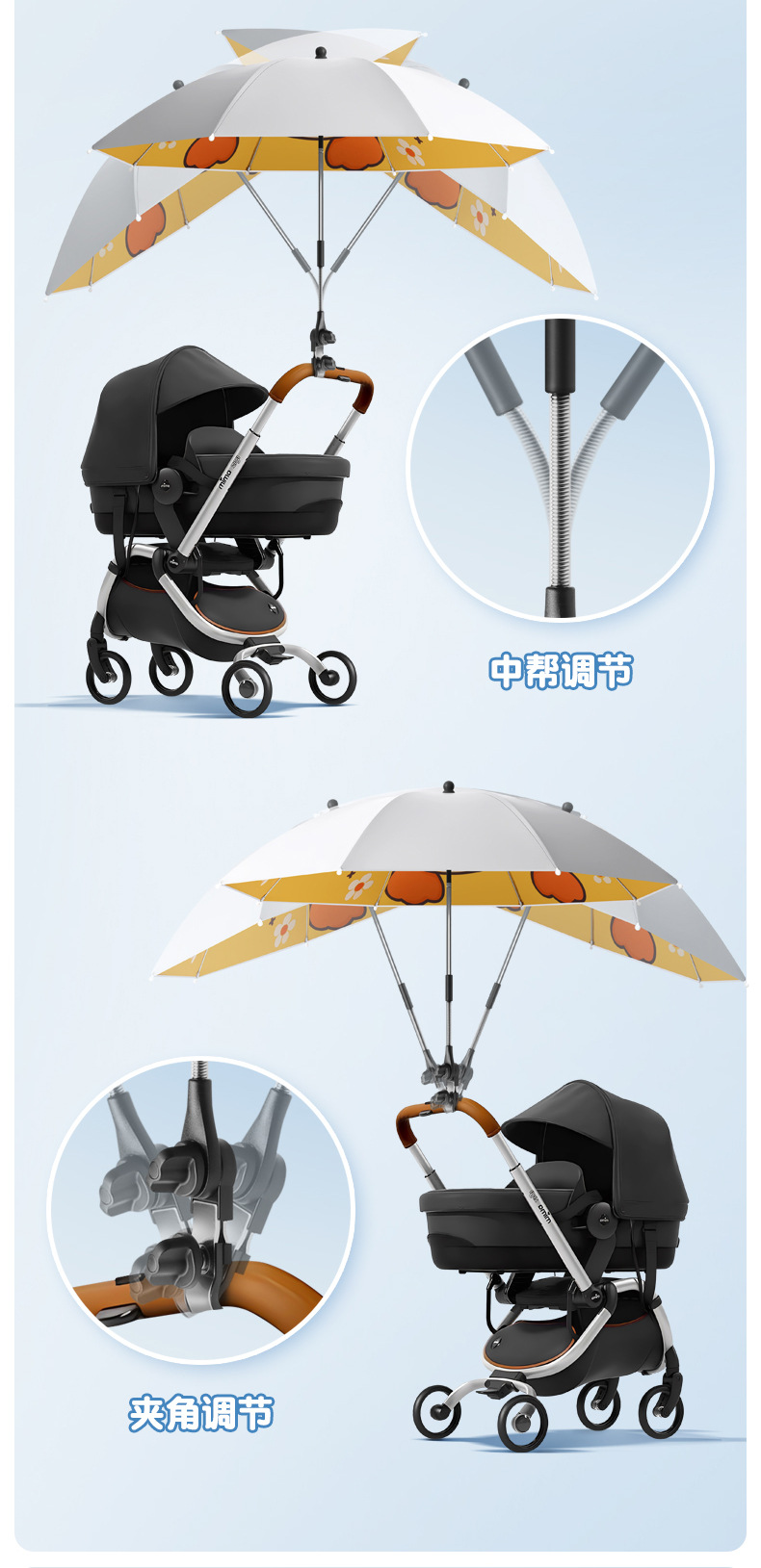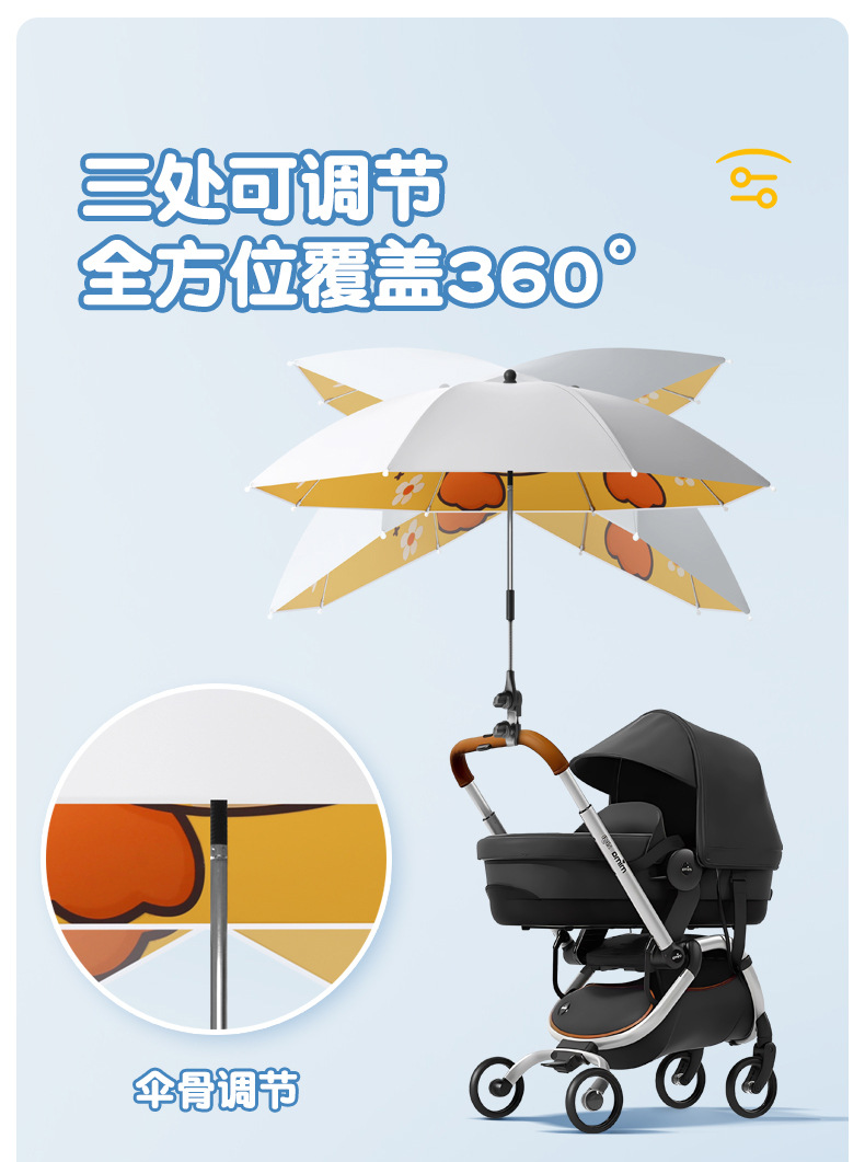 새로운 티타늄 실버 아기 세발자전거, 범용 유모차, 우산, 유모차, 자외선 차단제, 태양 우산스토어 가기