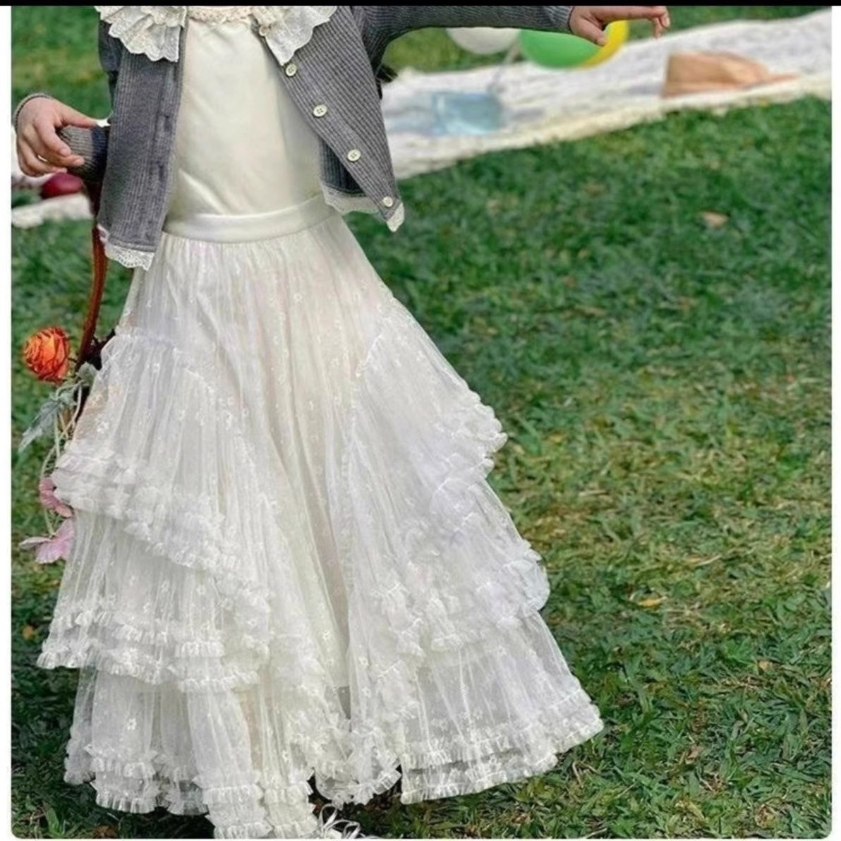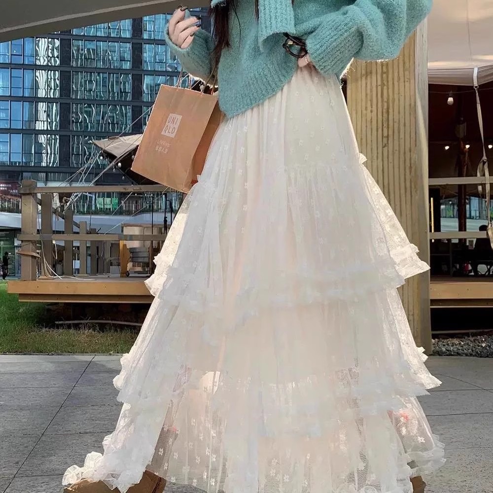 어린이용 화이트 레이스 스커트 퍼프 스커트 하프 스커트 봄 가을 2025 신상 패셔너블 케이크 스커트 롱 스커트스토어 가기