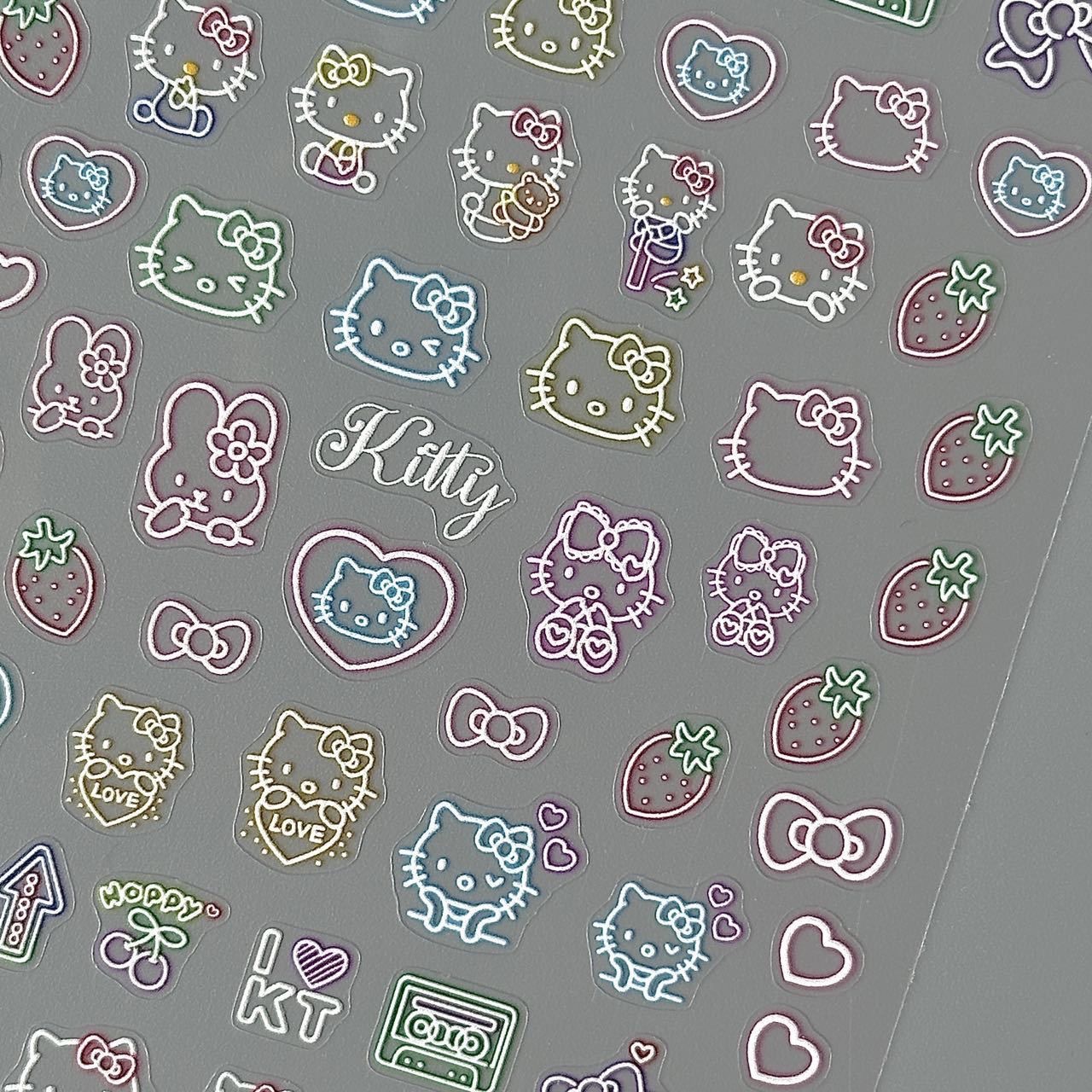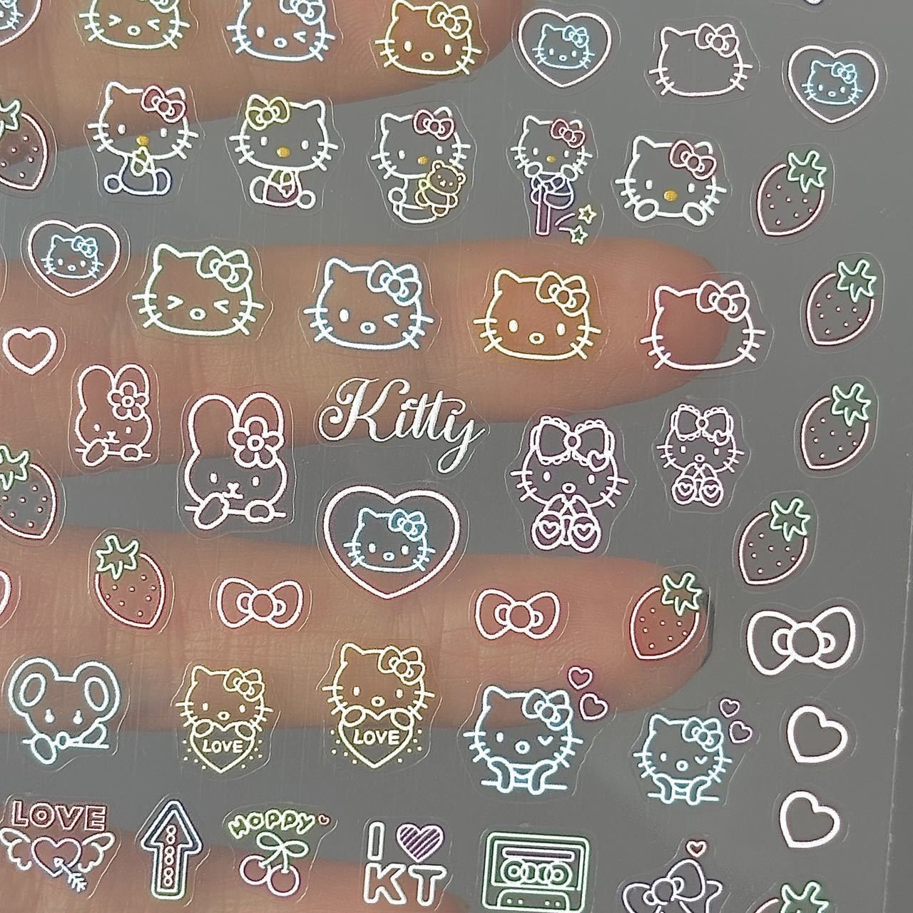KT 고양이 양각 입체 네일 아트 스티커 한국어 3D 학생 귀여운 diy 방수 네일 아트 도파민 네일 스티커