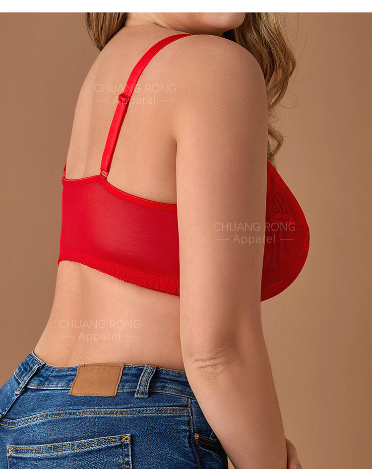 빅사이즈 크로스보더 노와이어 앞후크 브라 여성용 통통한 여성을 위한 레이스 얇은 모델 푸쉬업 처짐방지 브라
