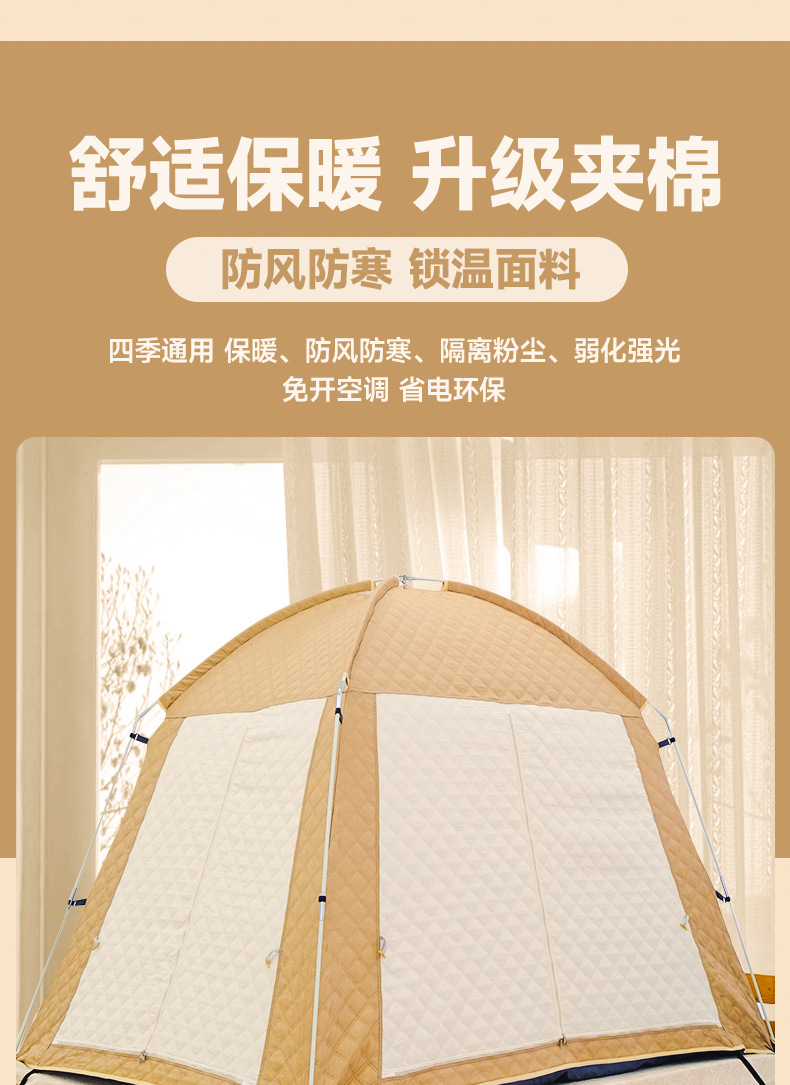 텐트 실내 가을 겨울 침대 텐트 침실 바닥 겨울 따뜻한 단열 방한 및 방풍 두꺼운 퀼트 텐트