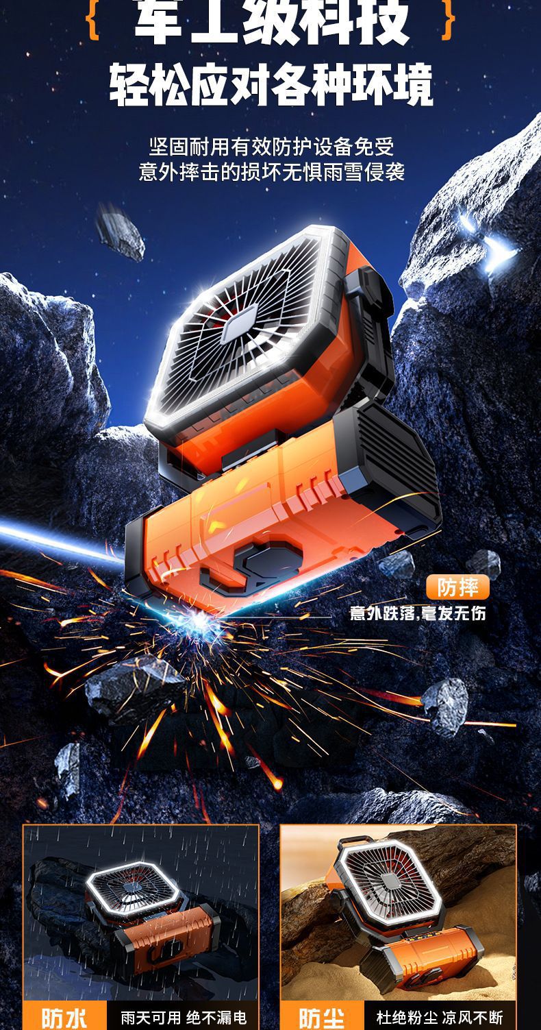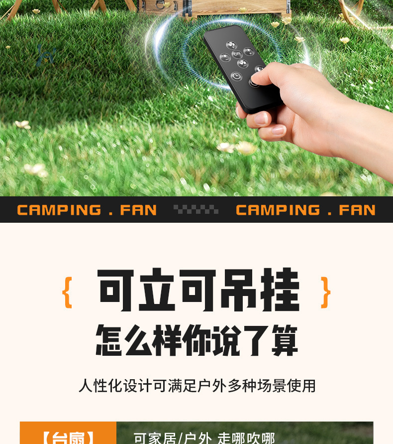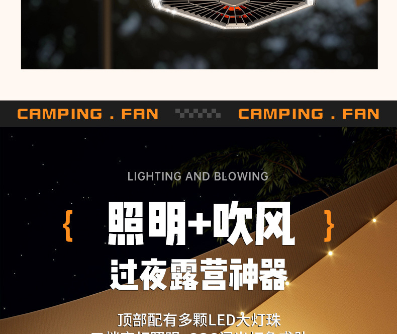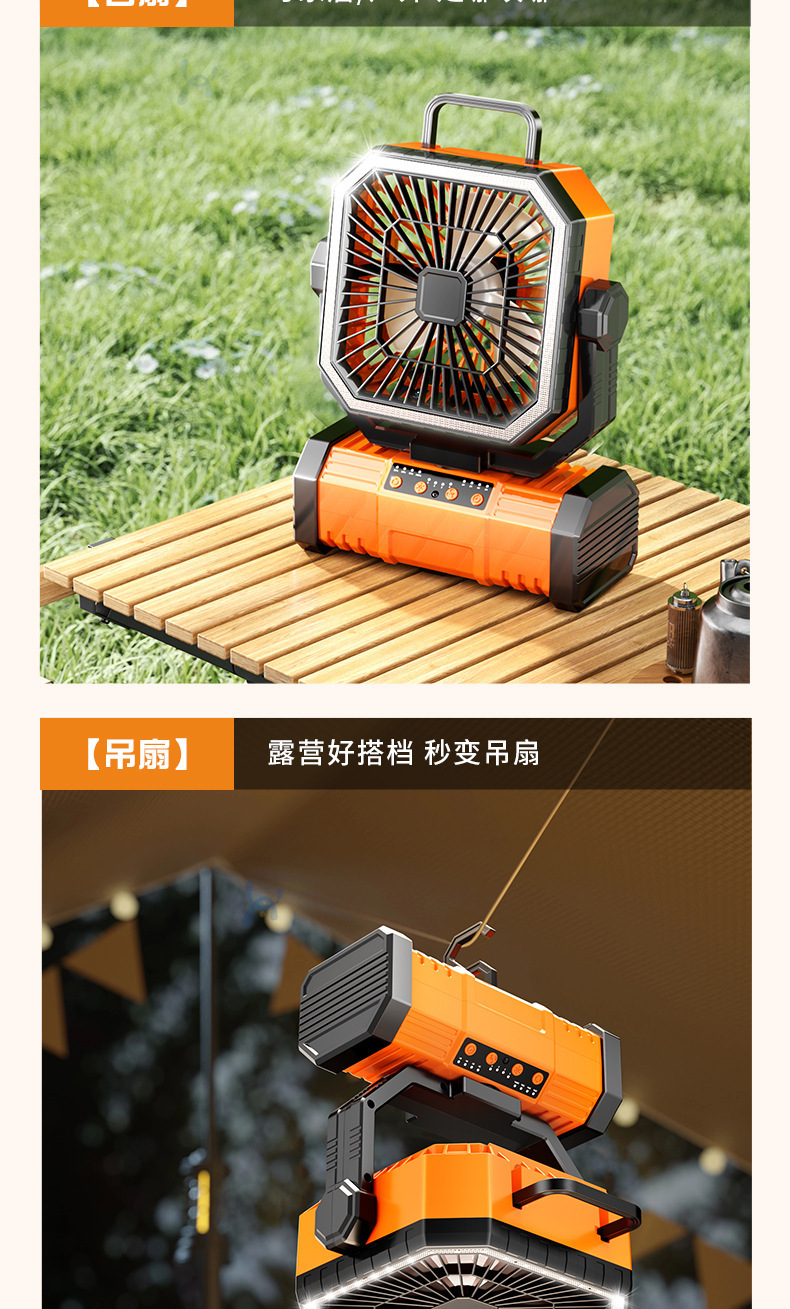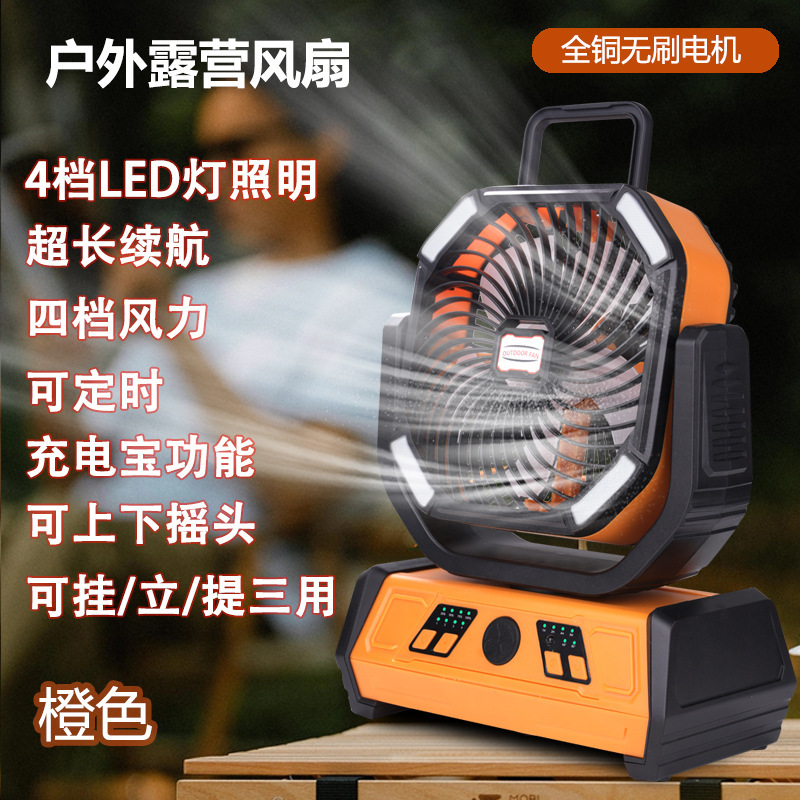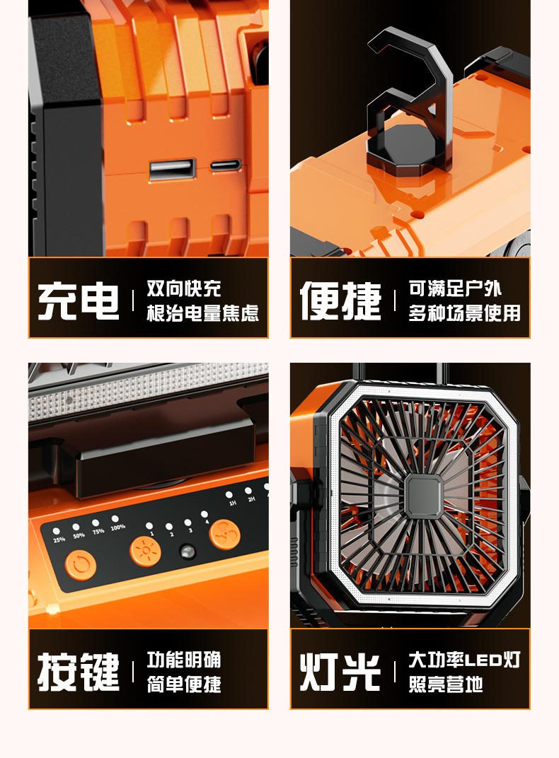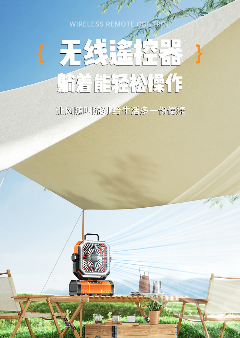 • 업그레이드된 리모콘 모델 - 캠핑선풍기 + 조명(블랙, 오렌지)