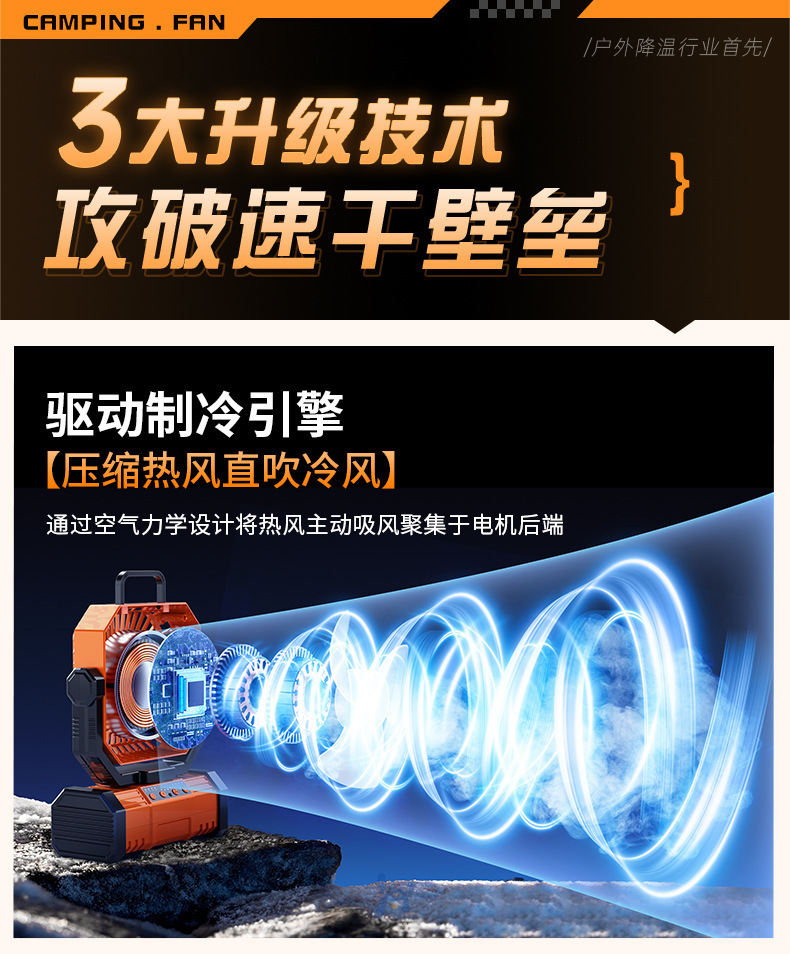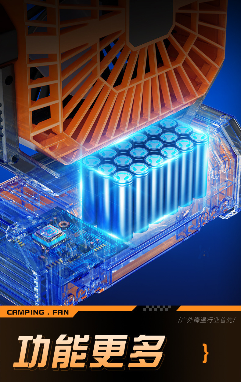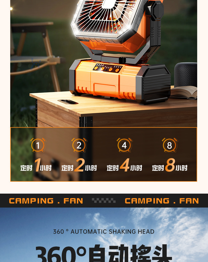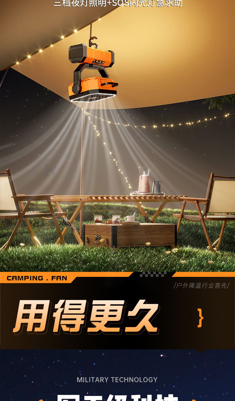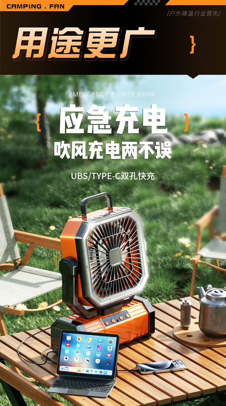 • 업그레이드된 리모콘 모델 - 캠핑선풍기 + 조명(블랙, 오렌지)