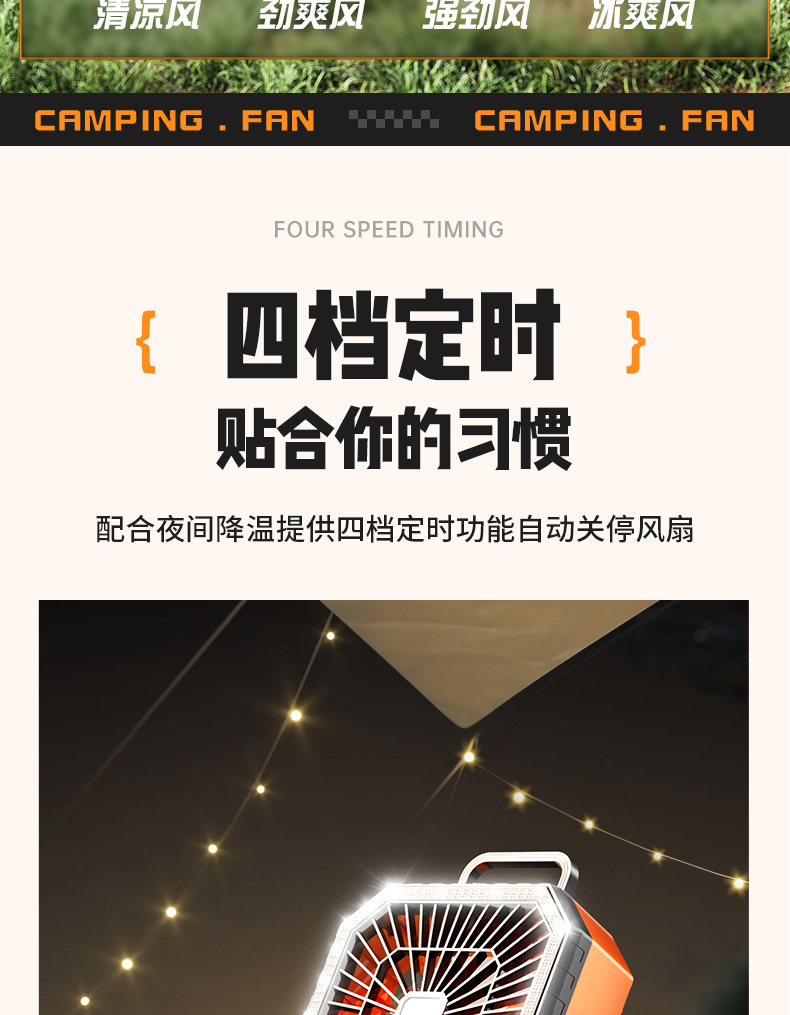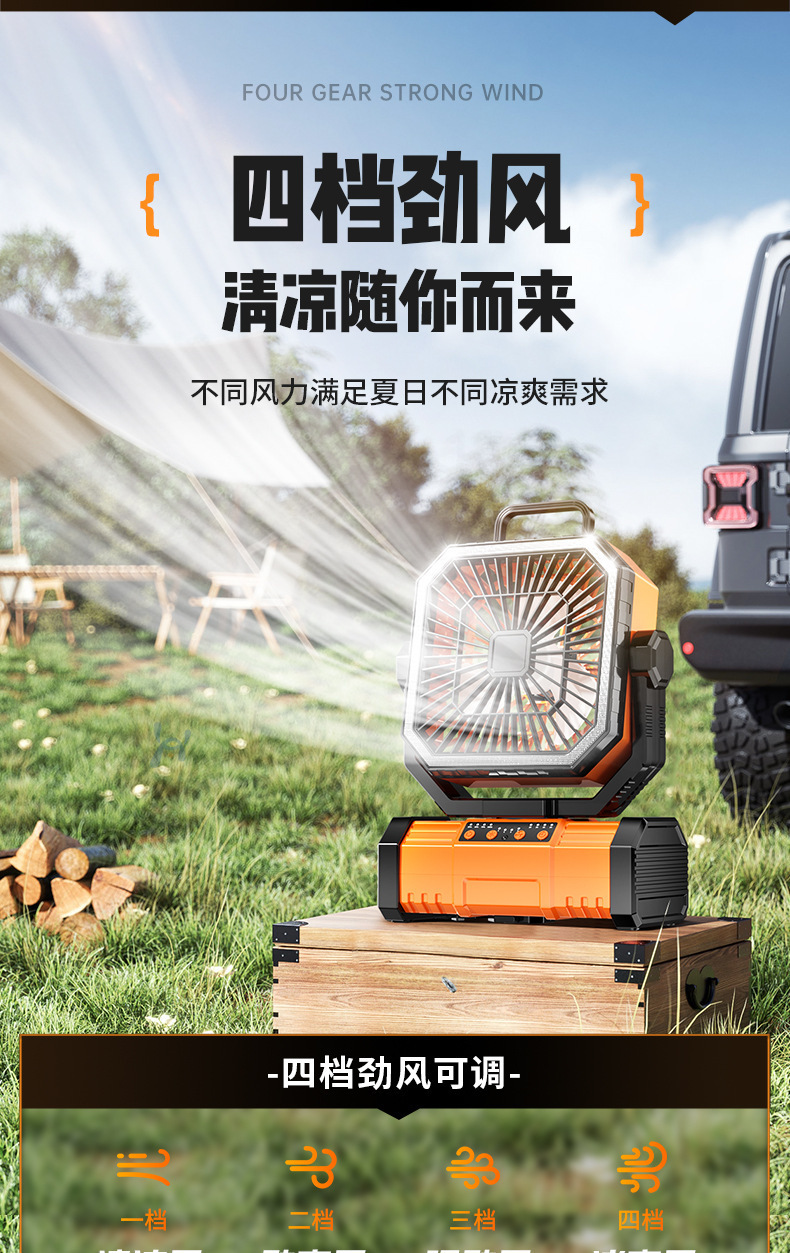 • 업그레이드된 리모콘 모델 - 캠핑선풍기 + 조명(바이브런트 오렌지)