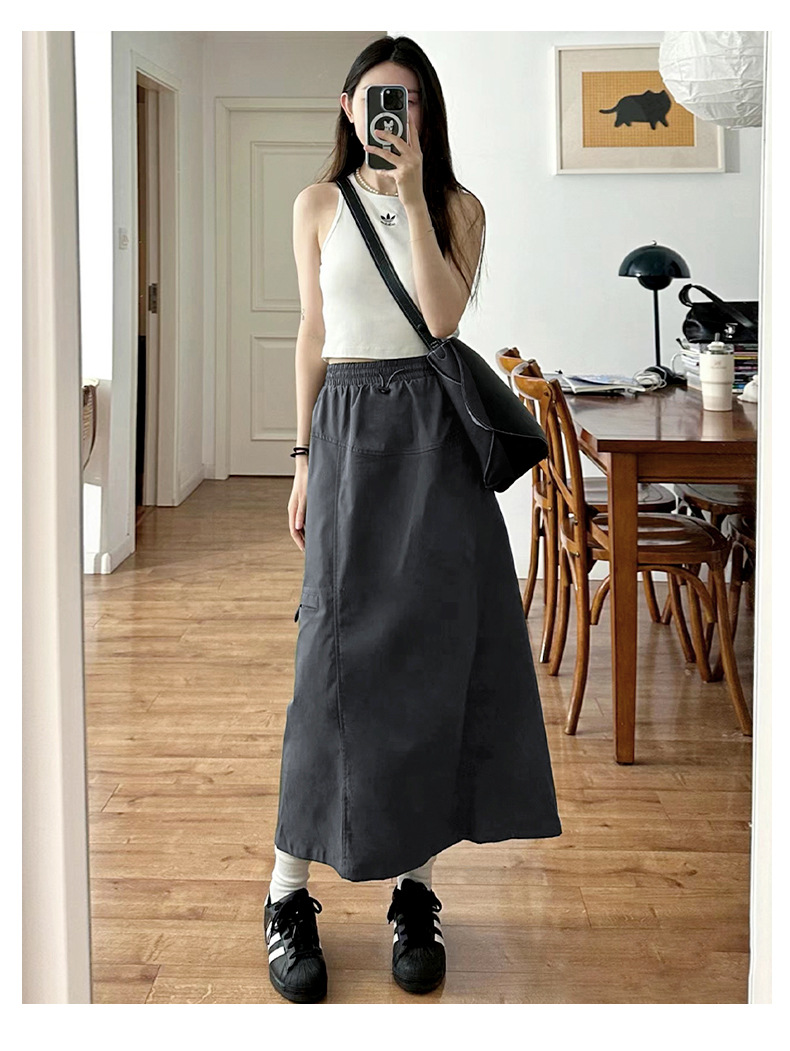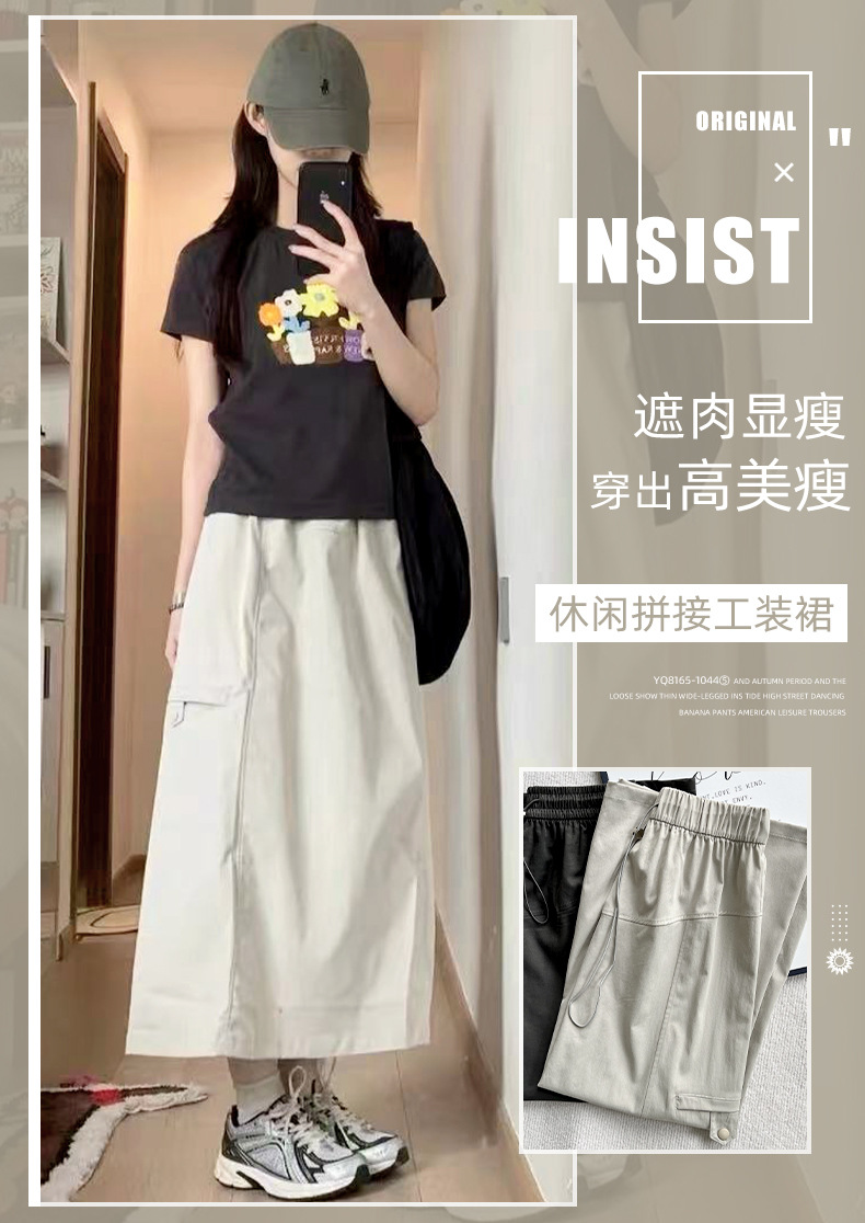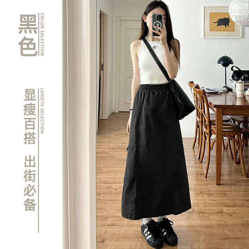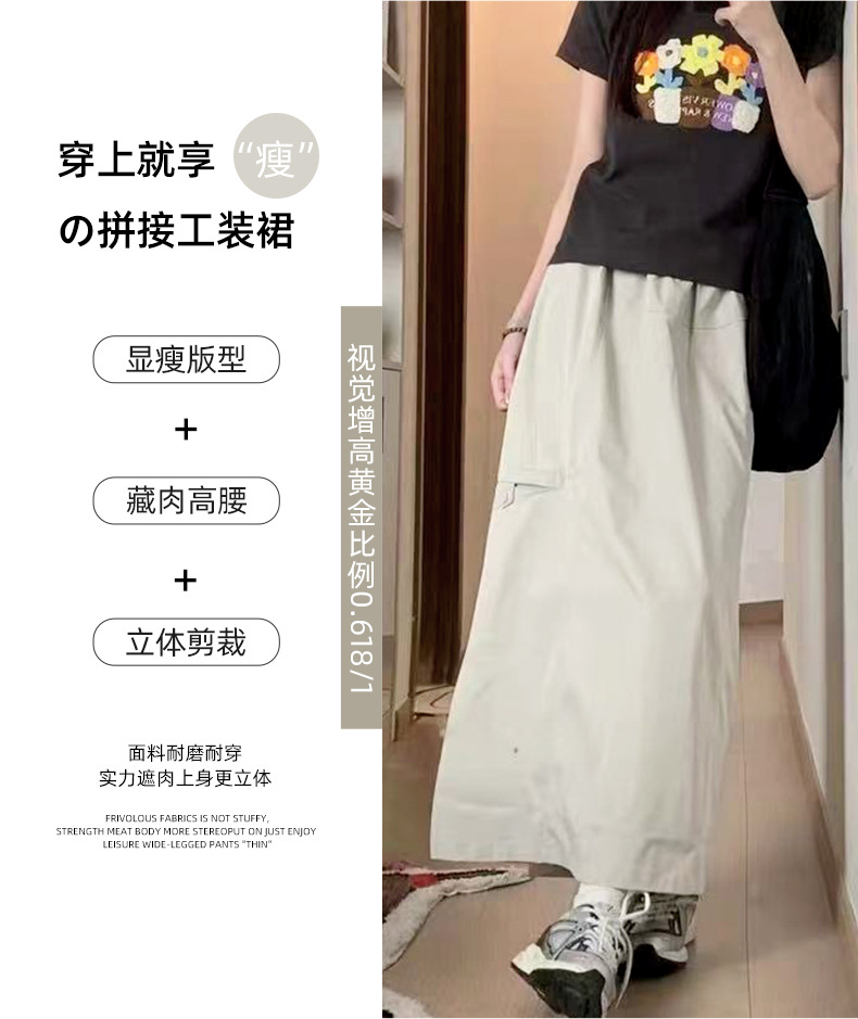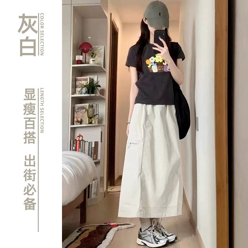 화이트 작업복 스커트 여성 여름 새로운 높은 허리 슬리밍 편안한 미국 스타일 빠른 건조 스플릿 스커트스토어 가기