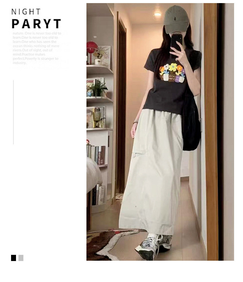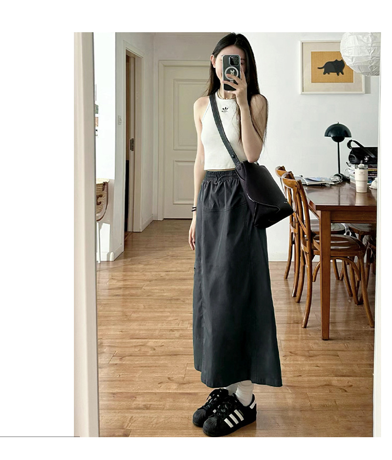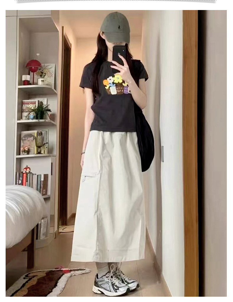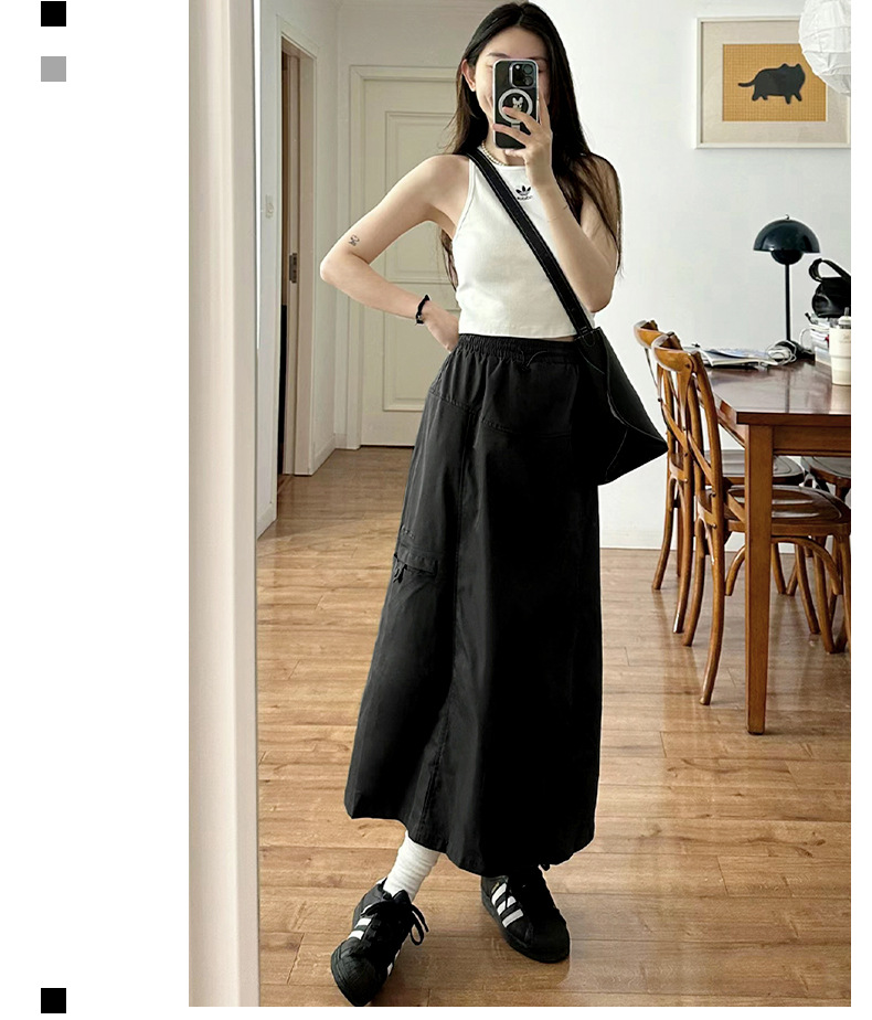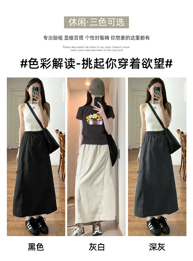 화이트 작업복 스커트 여성 여름 새로운 높은 허리 슬리밍 편안한 미국 스타일 빠른 건조 스플릿 스커트스토어 가기