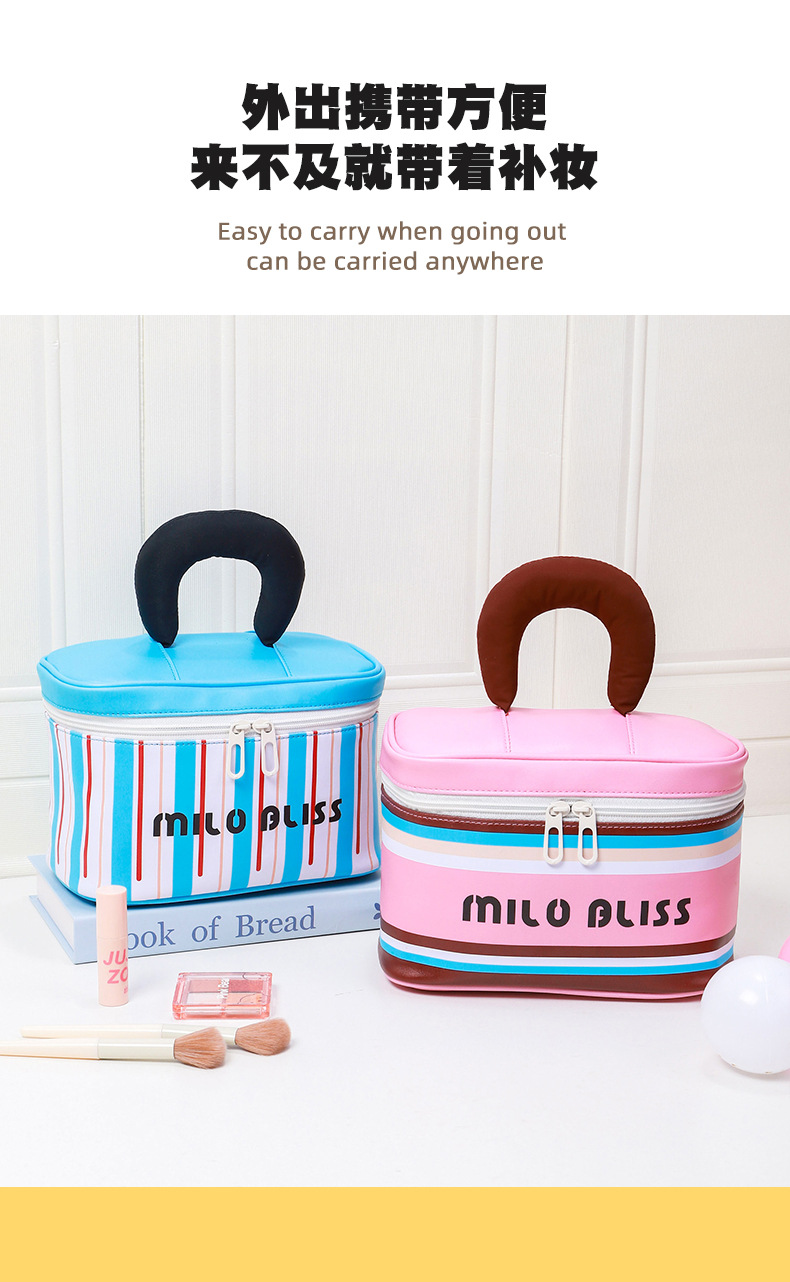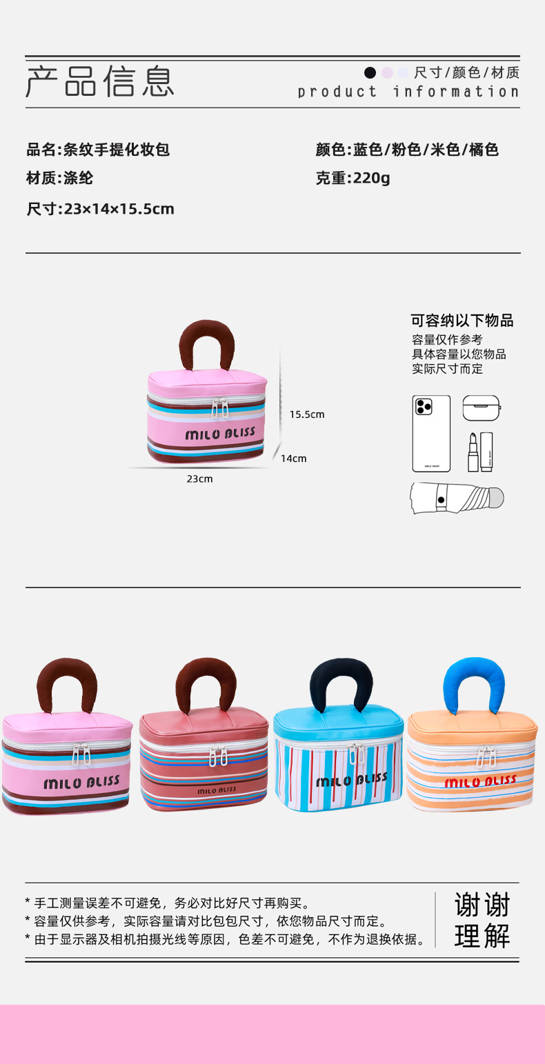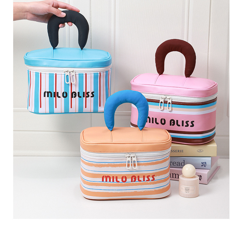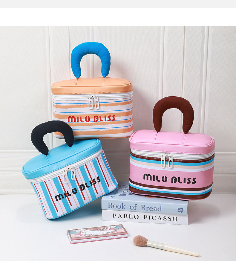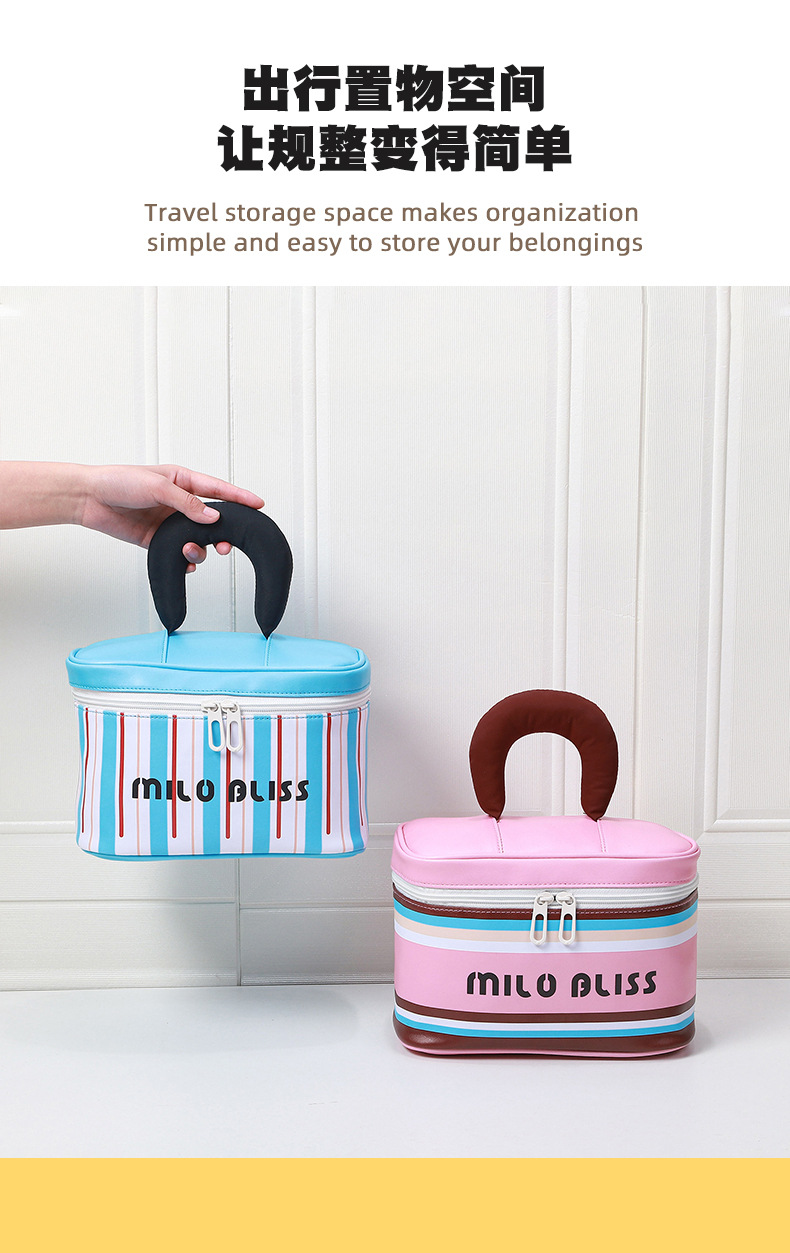 대용량 접이식 분리형 화장품 가방, 고급스러운 대비색 스트라이프, 휴대용 여행용 분리 수납 가방
