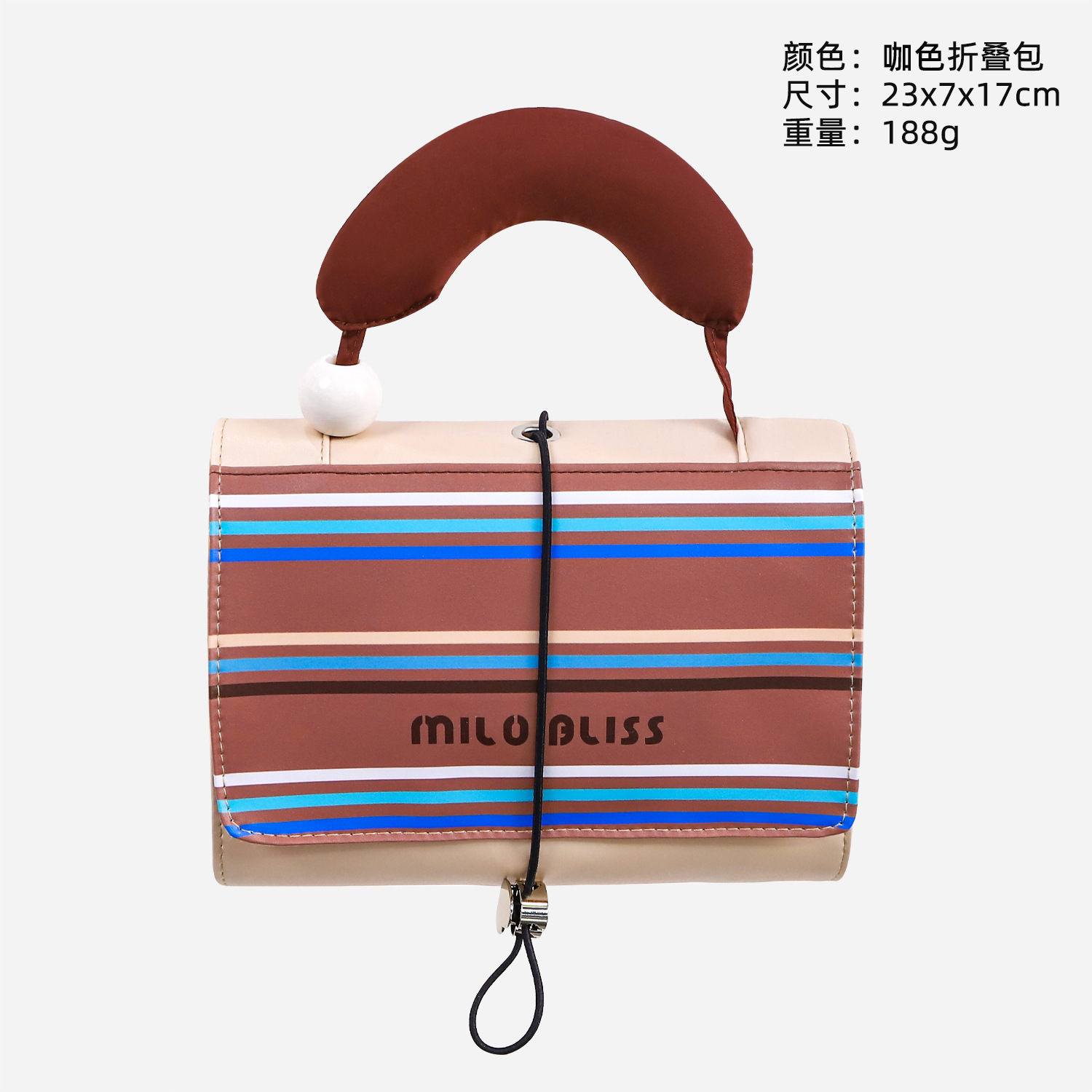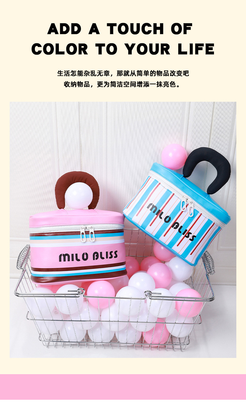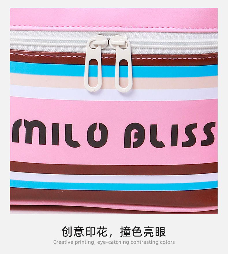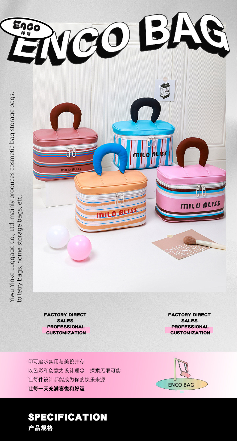 대용량 접이식 분리형 화장품 가방, 고급스러운 대비색 스트라이프, 휴대용 여행용 분리 수납 가방