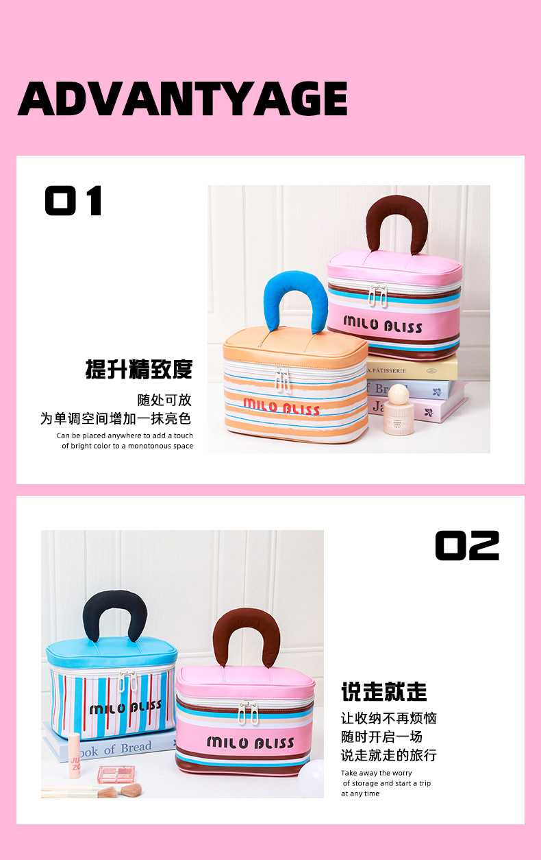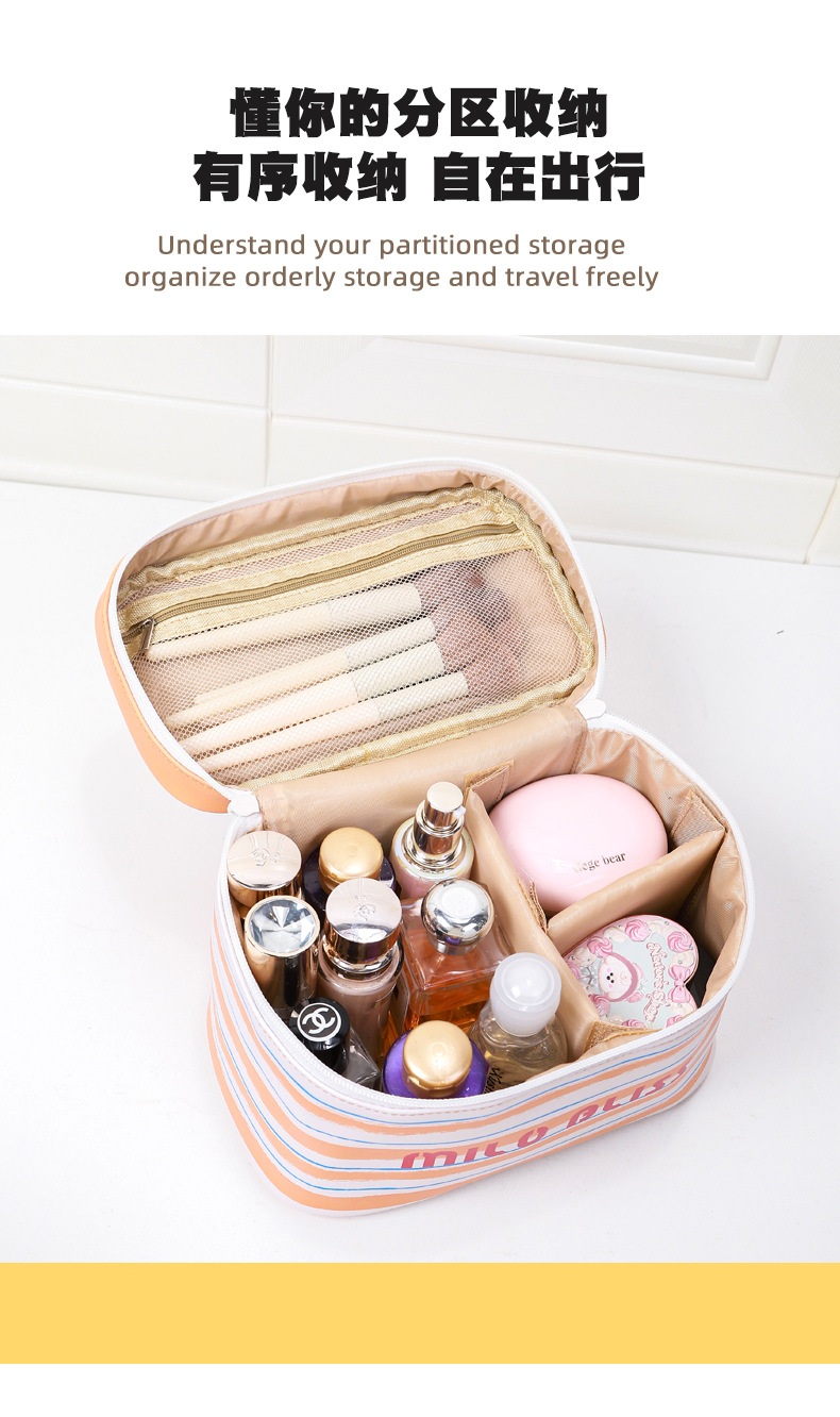 대용량 접이식 분리형 화장품 가방, 고급스러운 대비색 스트라이프, 휴대용 여행용 분리 수납 가방스토어 가기