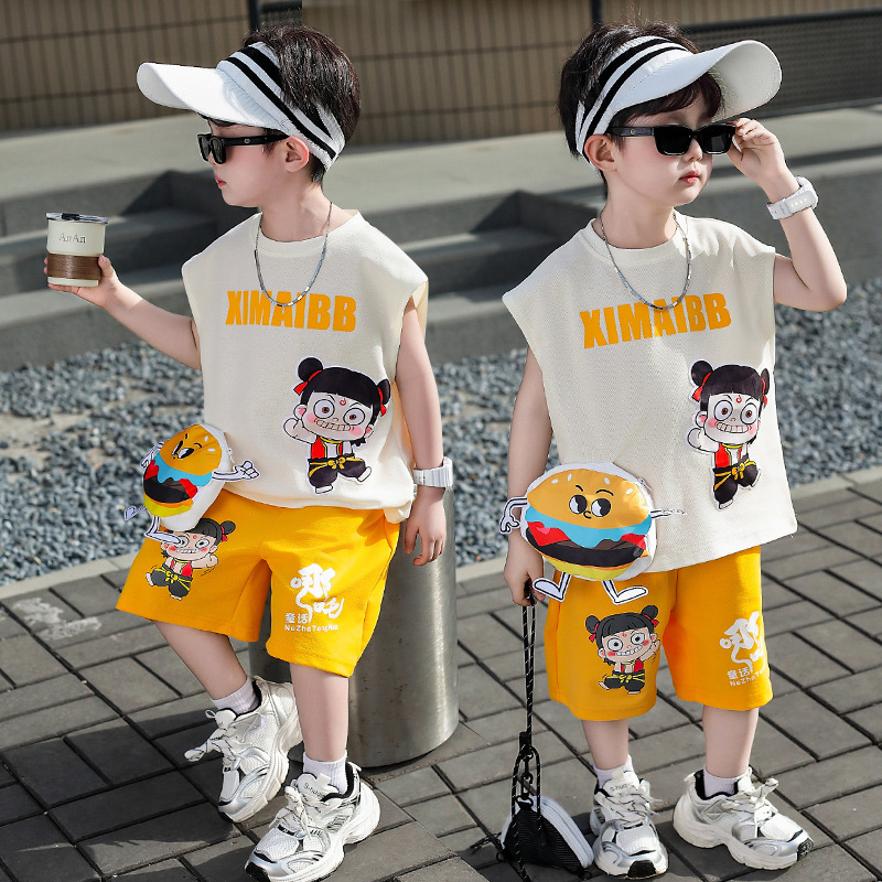 Nezha 옷 소년 여름 조끼 정장 2025 새로운 어린이 멋진 잘 생긴 스포츠 투피스 세트 민소매 소년스토어 가기