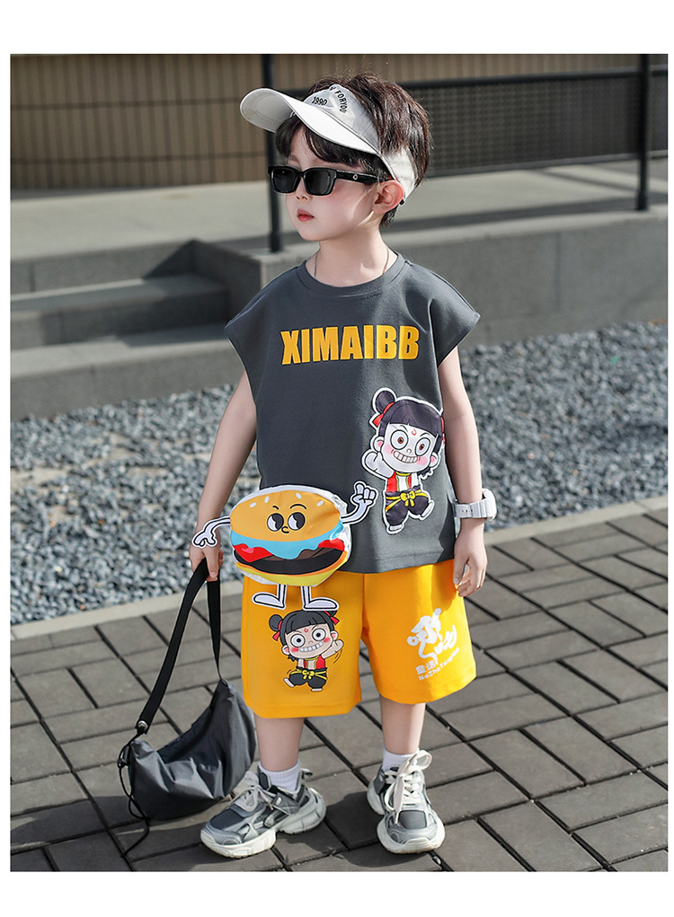 Nezha 옷 소년 여름 조끼 정장 2025 새로운 어린이 멋진 잘 생긴 스포츠 투피스 세트 민소매 소년