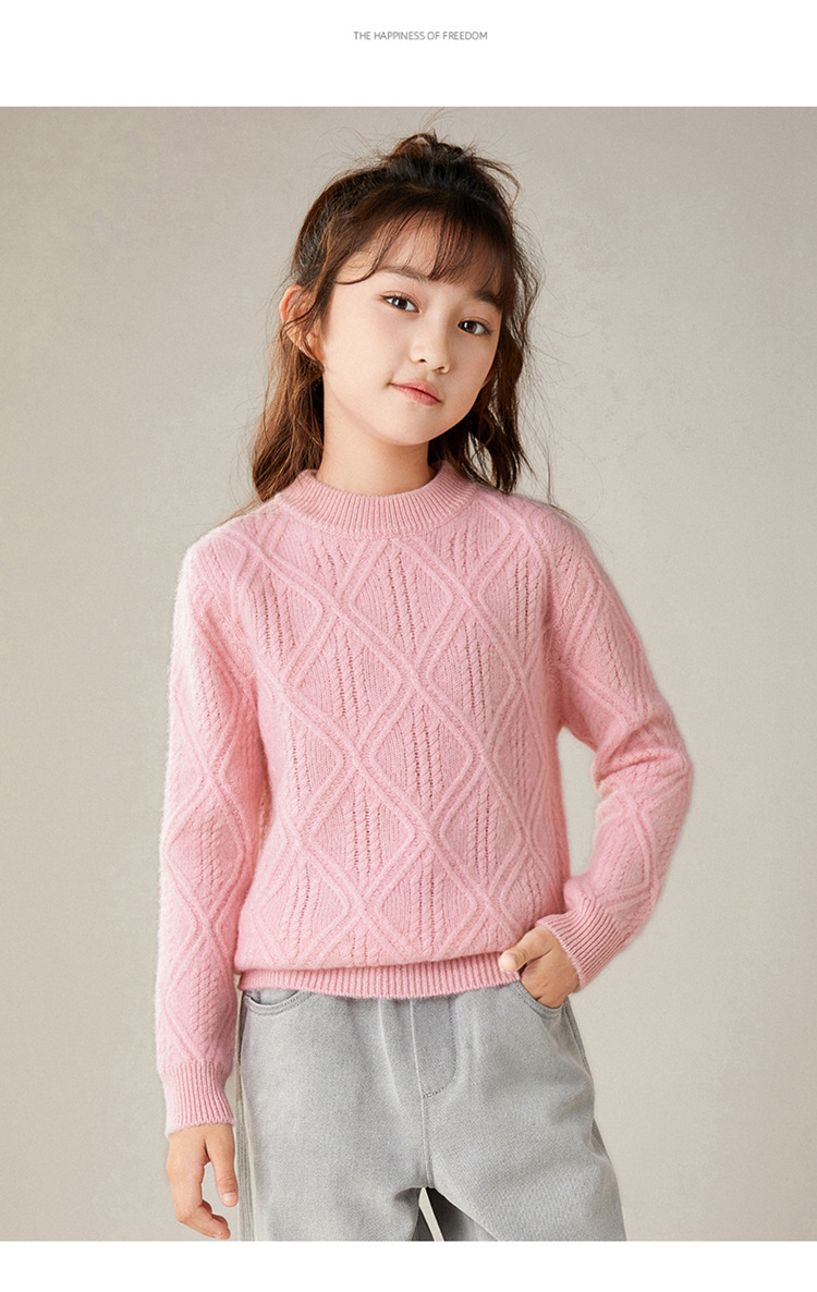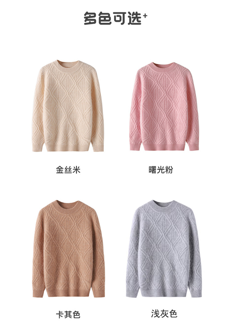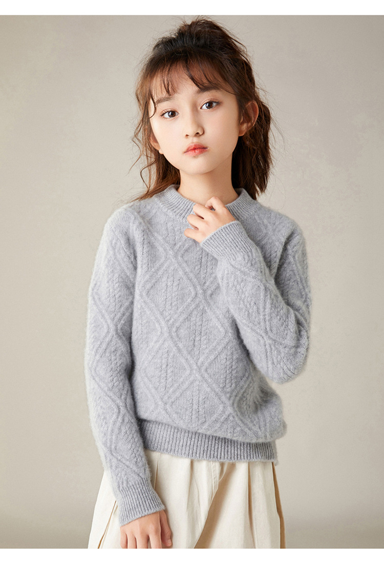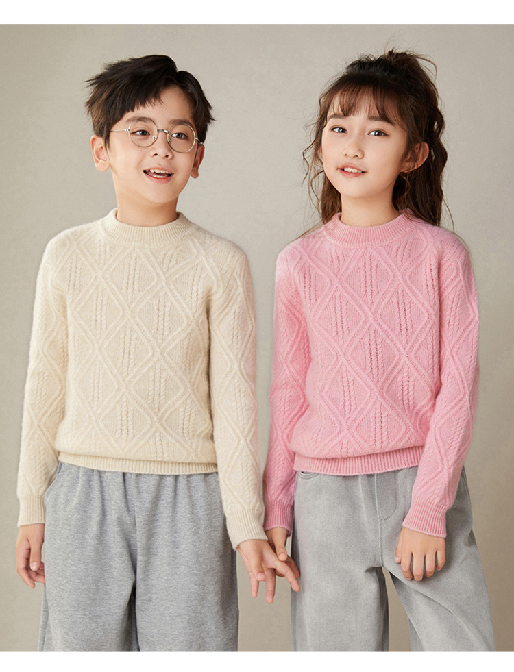 100 순수 양모 트위스트 다이아몬드 반 하이 칼라 디자인 센스 남자와 여자 아이들의 두꺼운 풀오버 스웨터 가을과 겨울 새로운