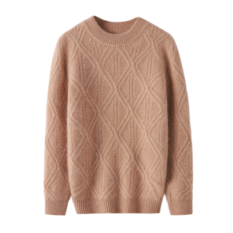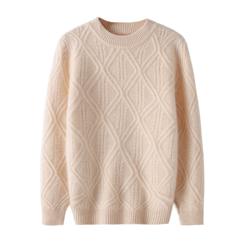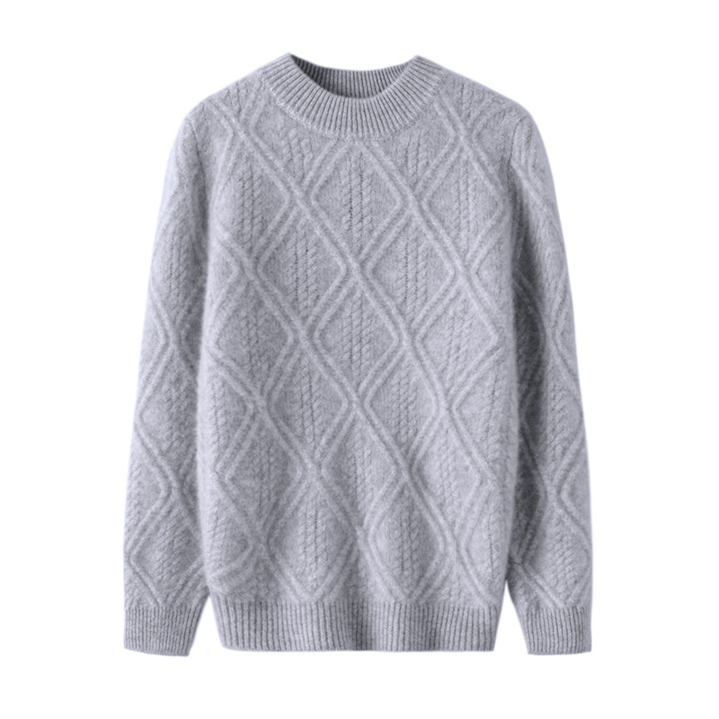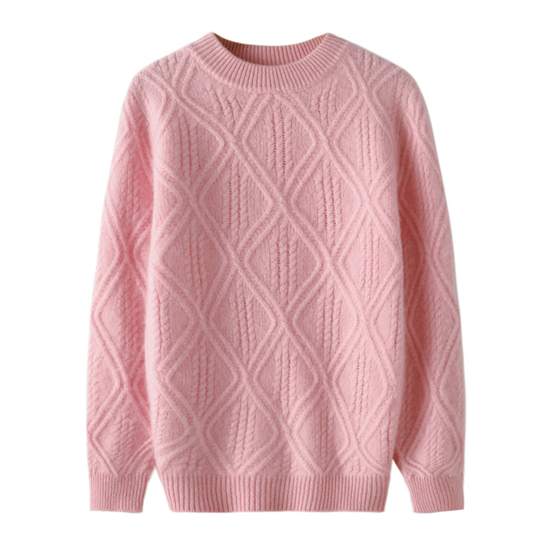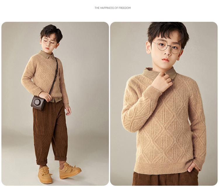 100 순수 양모 트위스트 다이아몬드 반 하이 칼라 디자인 센스 남자와 여자 아이들의 두꺼운 풀오버 스웨터 가을과 겨울 새로운