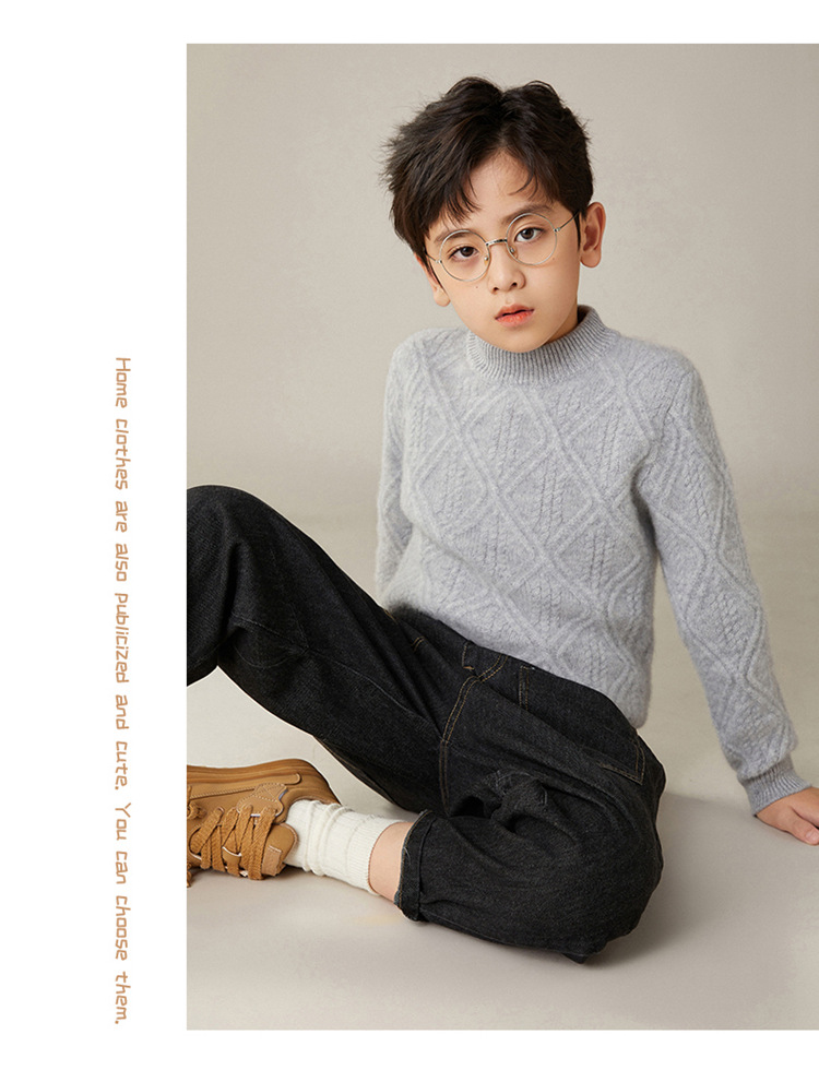 100 순수 양모 트위스트 다이아몬드 반 하이 칼라 디자인 센스 남자와 여자 아이들의 두꺼운 풀오버 스웨터 가을과 겨울 새로운스토어 가기