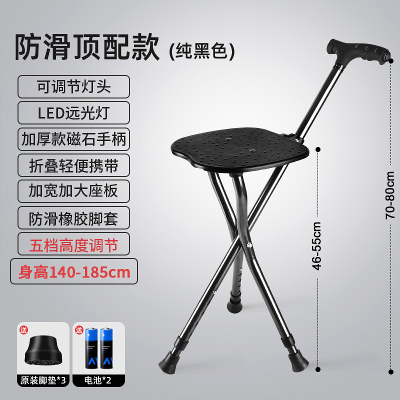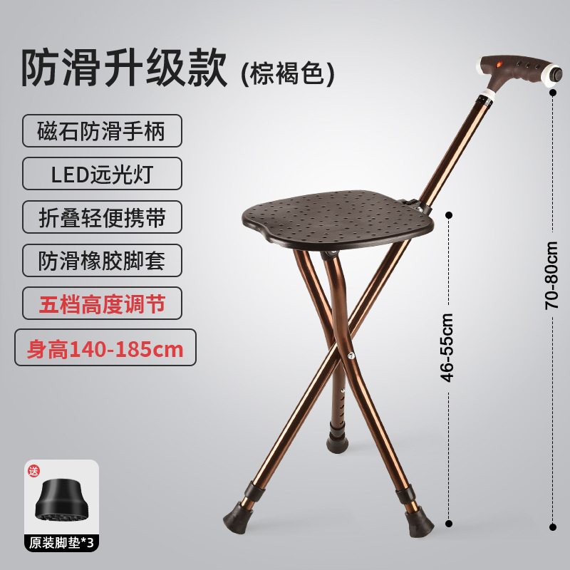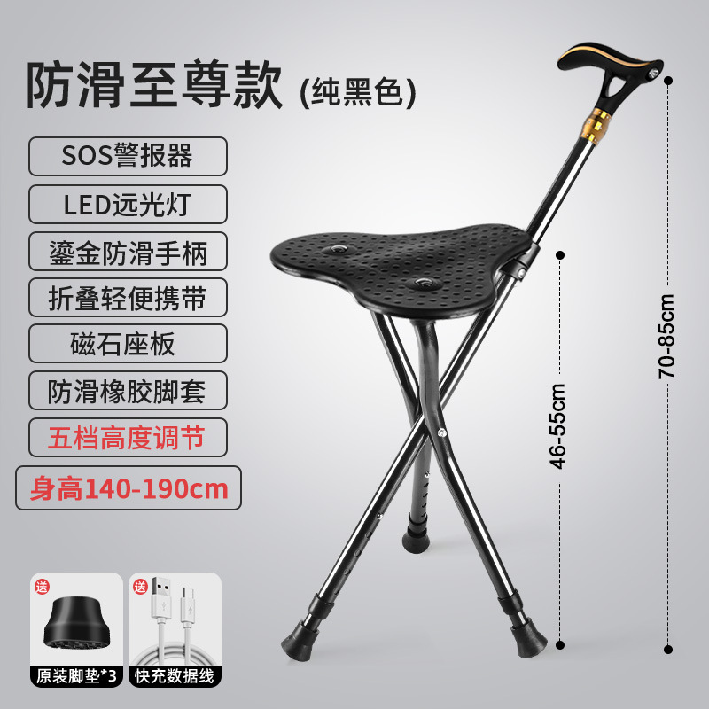 목발 접이식 의자, 휴대용 벤치, 노인용 의자, 노인용 미끄럼 방지 목발이 있는 이중 목적 목발