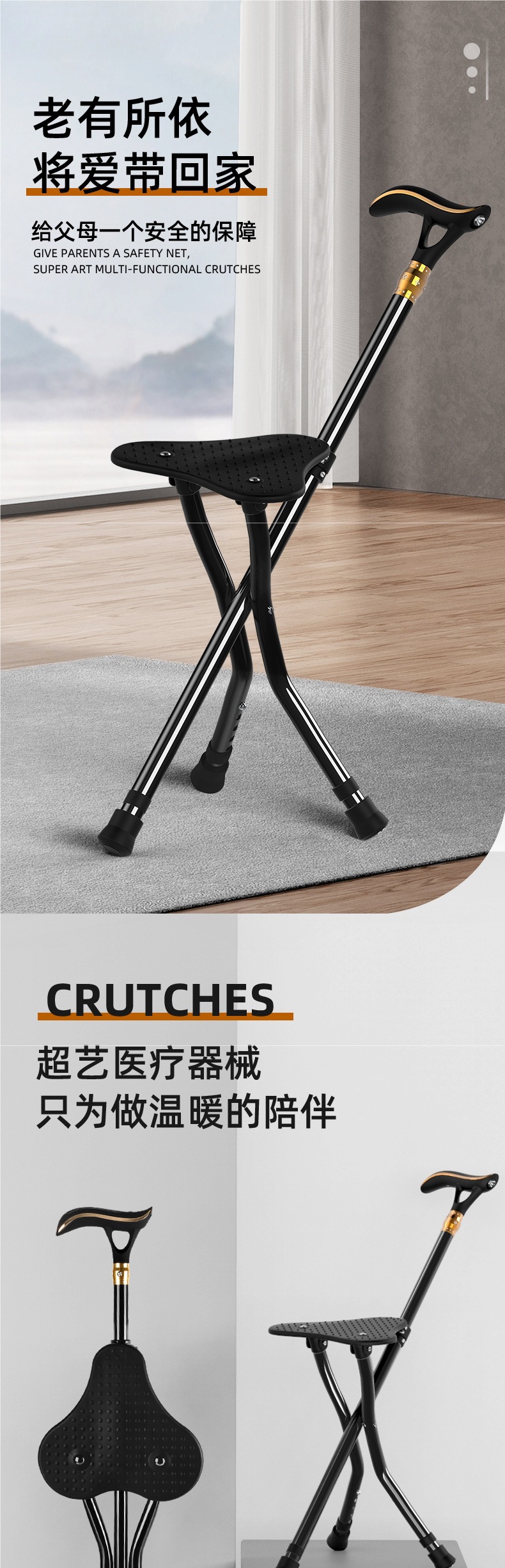목발 접이식 의자, 휴대용 벤치, 노인용 의자, 노인용 미끄럼 방지 목발이 있는 이중 목적 목발스토어 가기