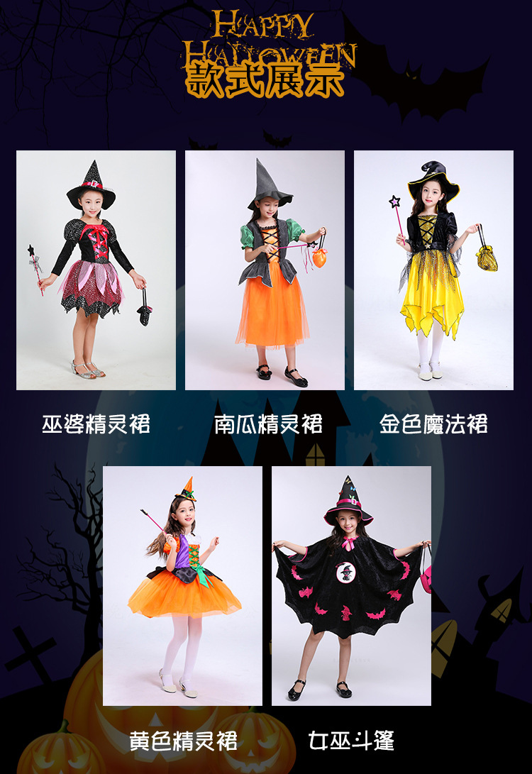 할로윈 카니발 파티 어린이 드레스 어린이 날 학교 활동 무대 쇼 코스프레 마녀 의상스토어 가기