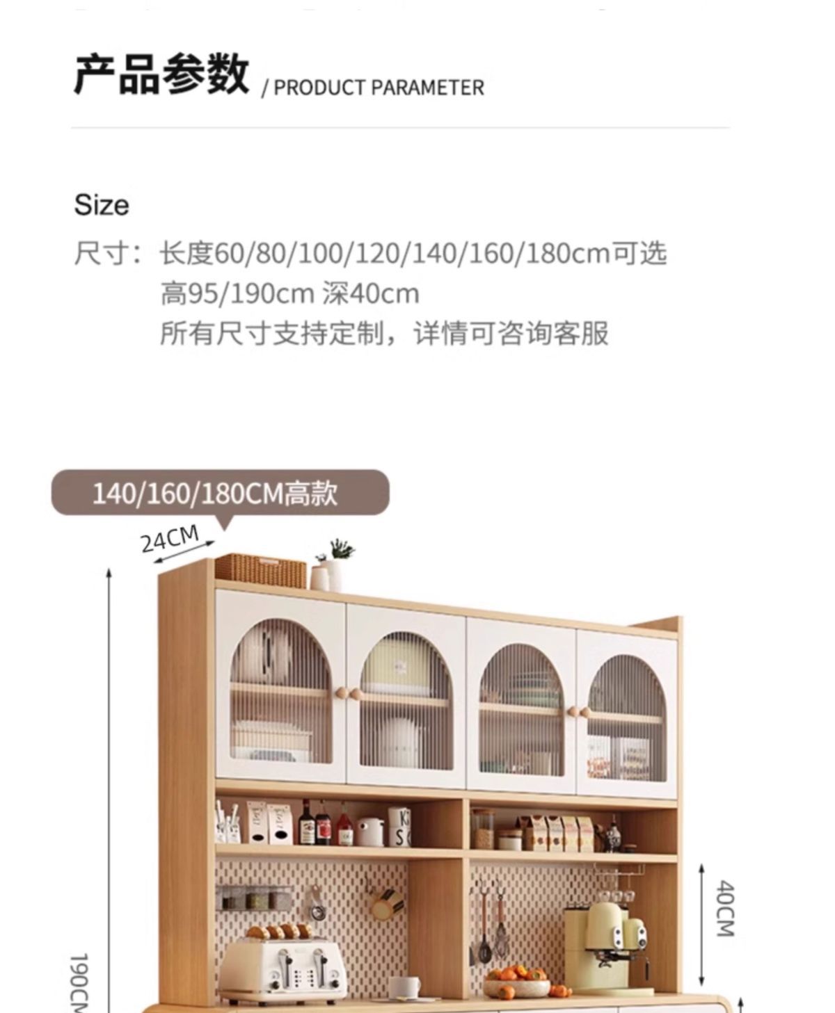 원목 크림 스타일 찬장 벽 일체형 수납 캐비닛 주방 및 레스토랑 다기능 수납 캐비닛 와인 m^