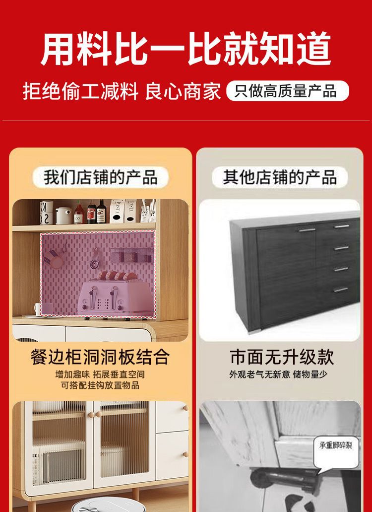 원목 크림 스타일 찬장 벽 일체형 수납 캐비닛 주방 및 레스토랑 다기능 수납 캐비닛 와인 m^스토어 가기