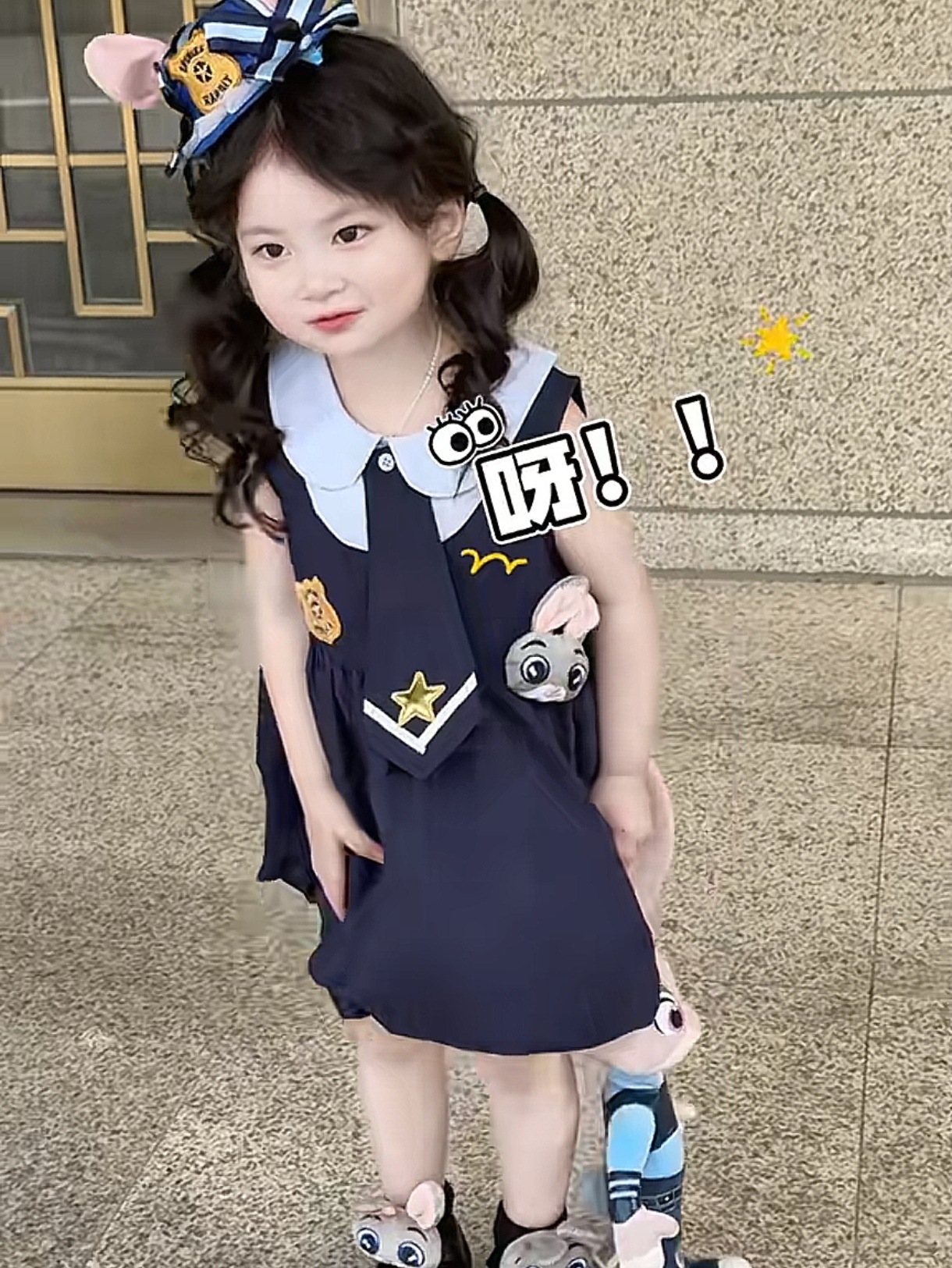 린 린 엄마 2025 여름 cos 토끼 경찰관 여성 아기 jk 귀여운 인형 칼라 학술 스타일 꽃 봉오리 치마 도매