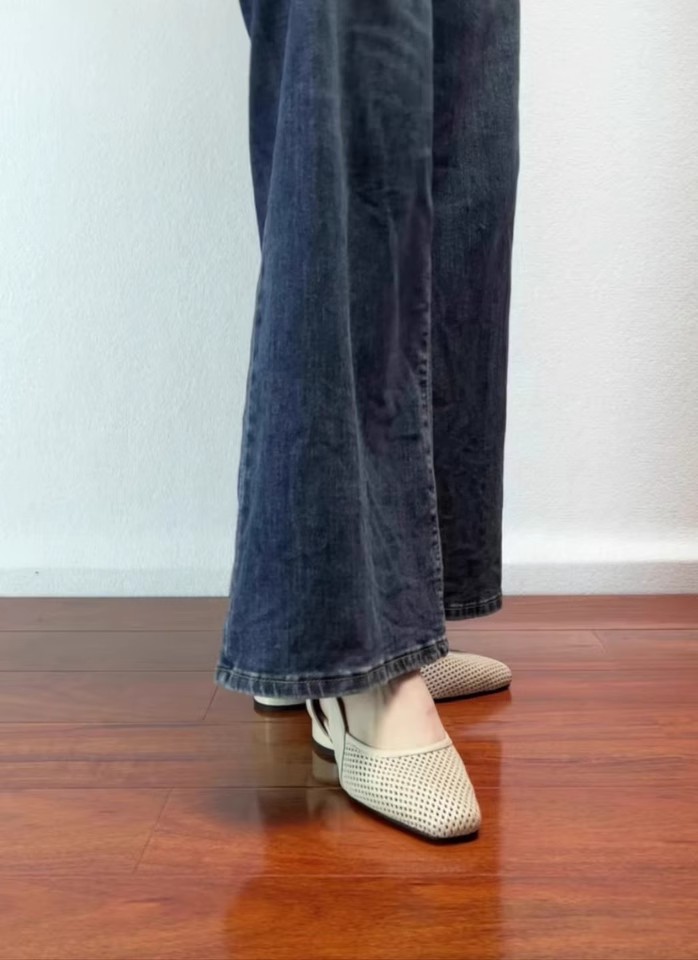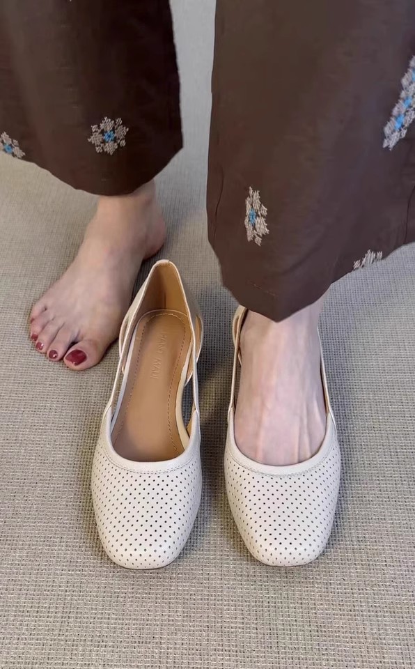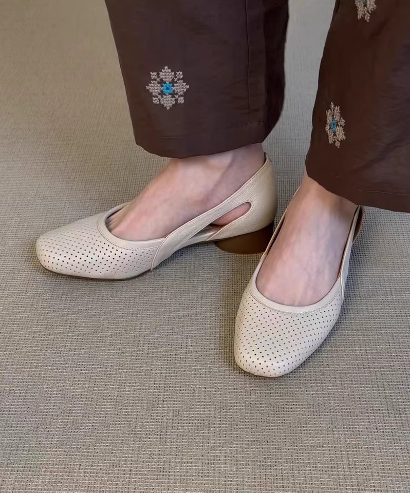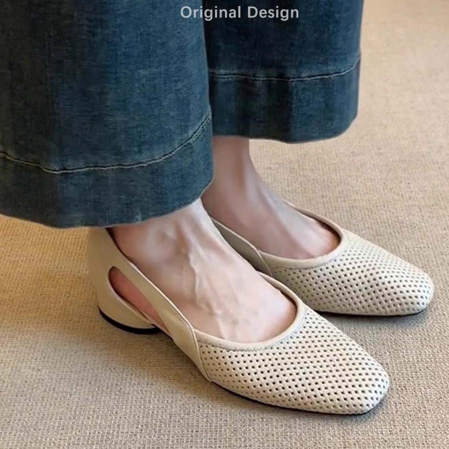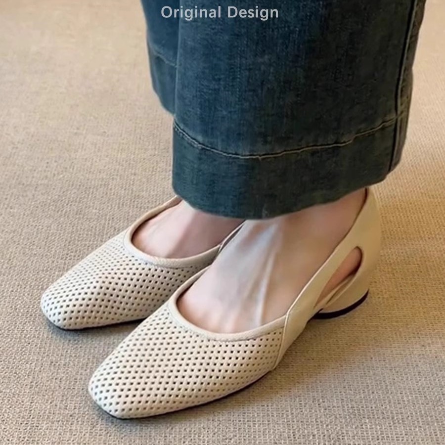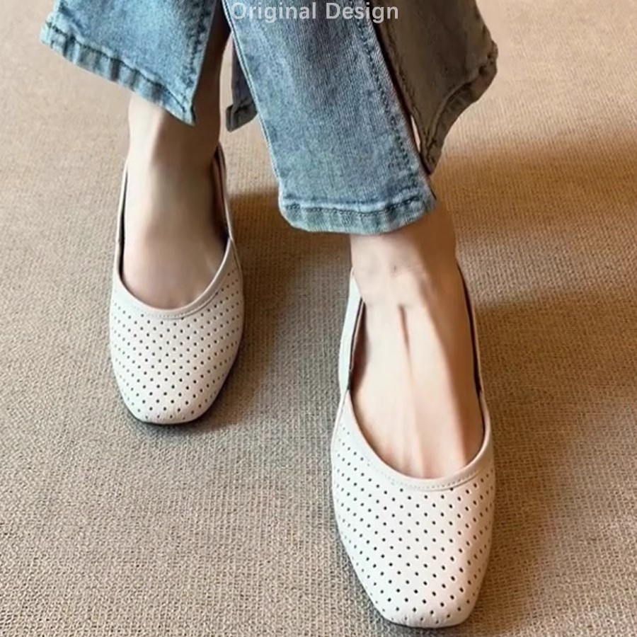 슈퍼 소프트 양가죽 ~ 프렌치 쿨 싱글 슈즈 여성 스퀘어 헤드 할로우 메쉬 슈즈 레트로 얕은 입 할로우 통기성 메리 제인 신발
