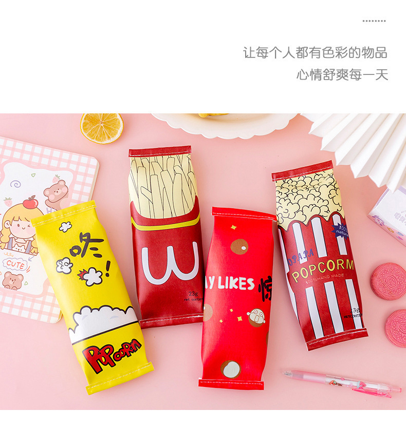 만화 스낵 연필 케이스 학생 펜 상자 편지지 가방 팝콘 감자 튀김 보관 가방 연필 케이스 학생 문구 선물