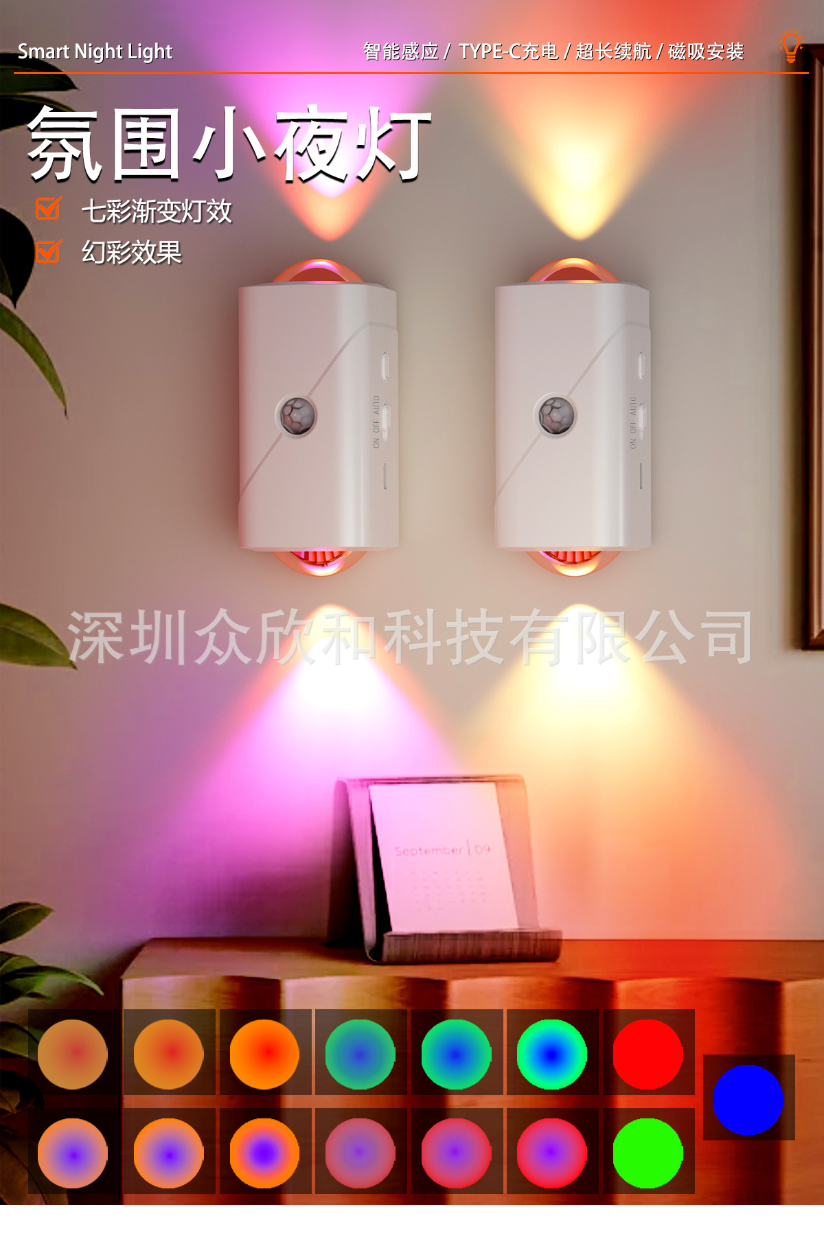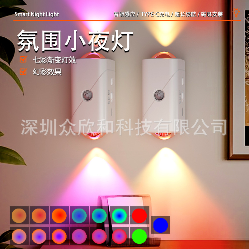 국경 간 새로운 RGB 스마트 센서 야간 조명 침실 거실 센서 분위기 빛 따뜻한 가정 빛 자기 매력