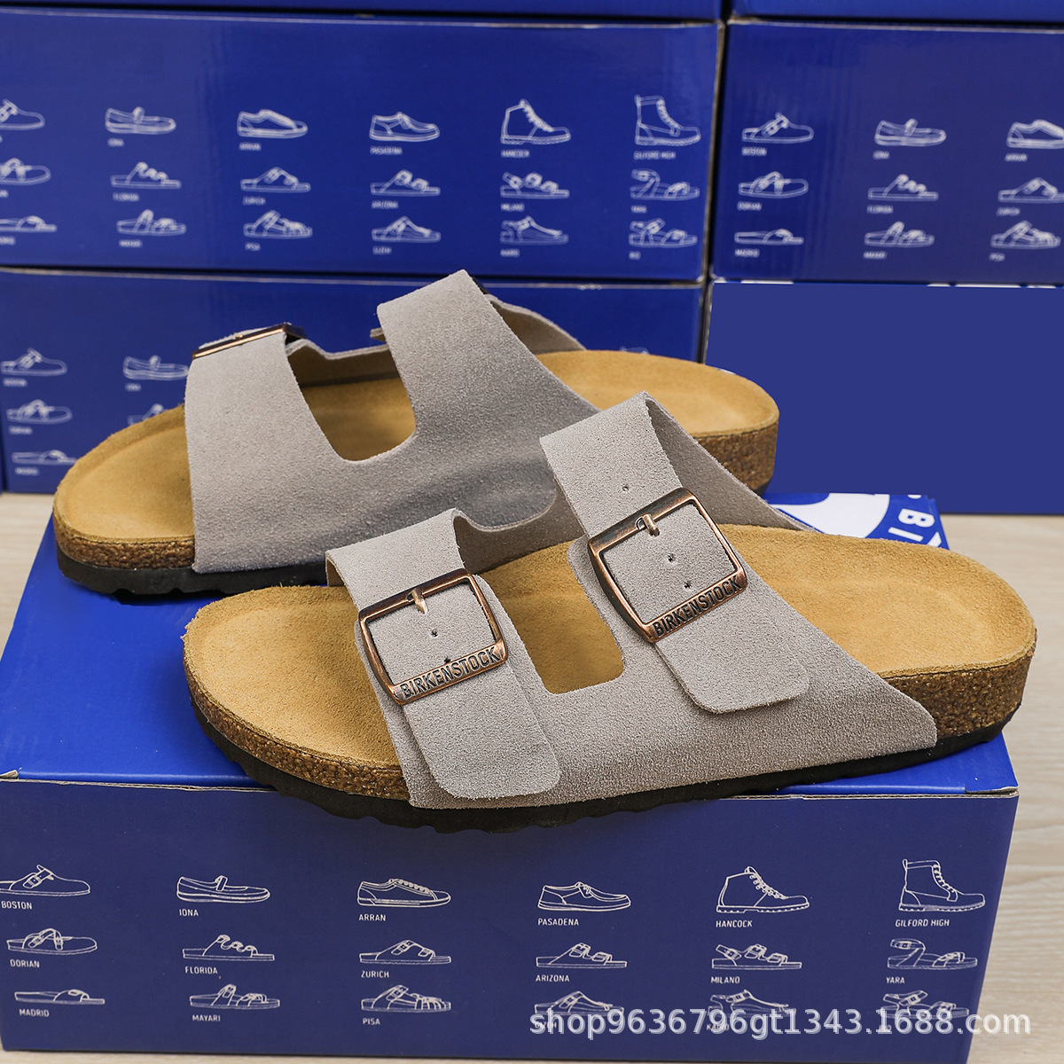 공장 아울렛 리얼 Cowhide Birkenth 신발 남녀 샌들 더블 브레스트 두 단어 슬리퍼 아웃웨어 게으른 슬리퍼 패션 여성스토어 가기