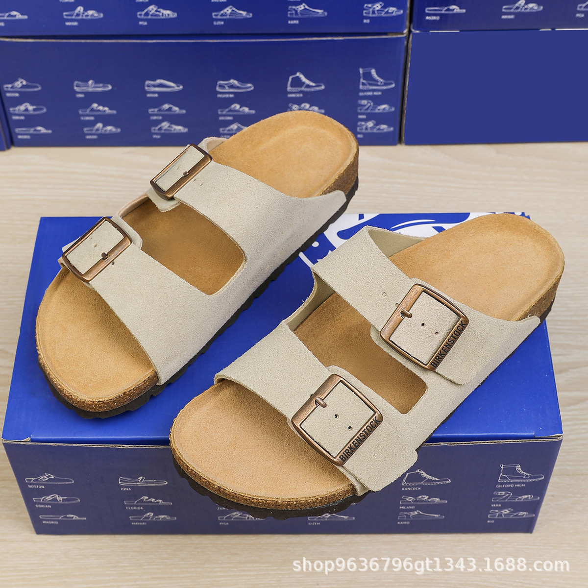 공장 아울렛 리얼 Cowhide Birkenth 신발 남녀 샌들 더블 브레스트 두 단어 슬리퍼 아웃웨어 게으른 슬리퍼 패션 여성