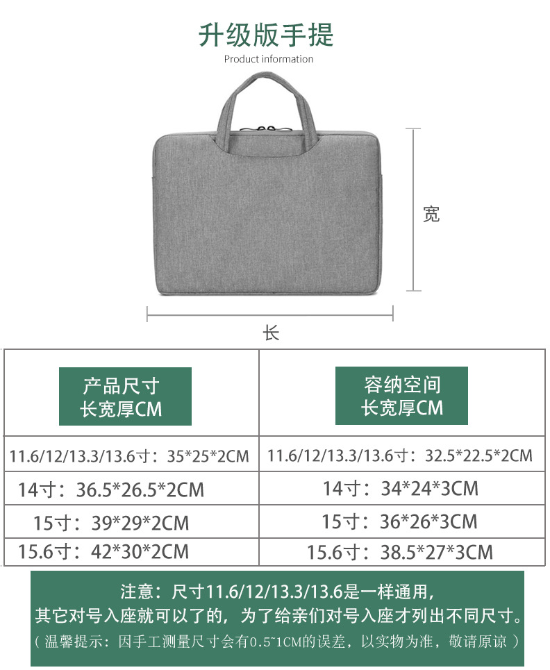 11/12/新13寸:外观 34*24 容纳:32.5*22.5*3CM 重量:0.25kg