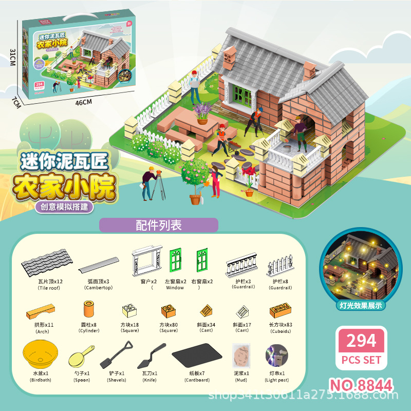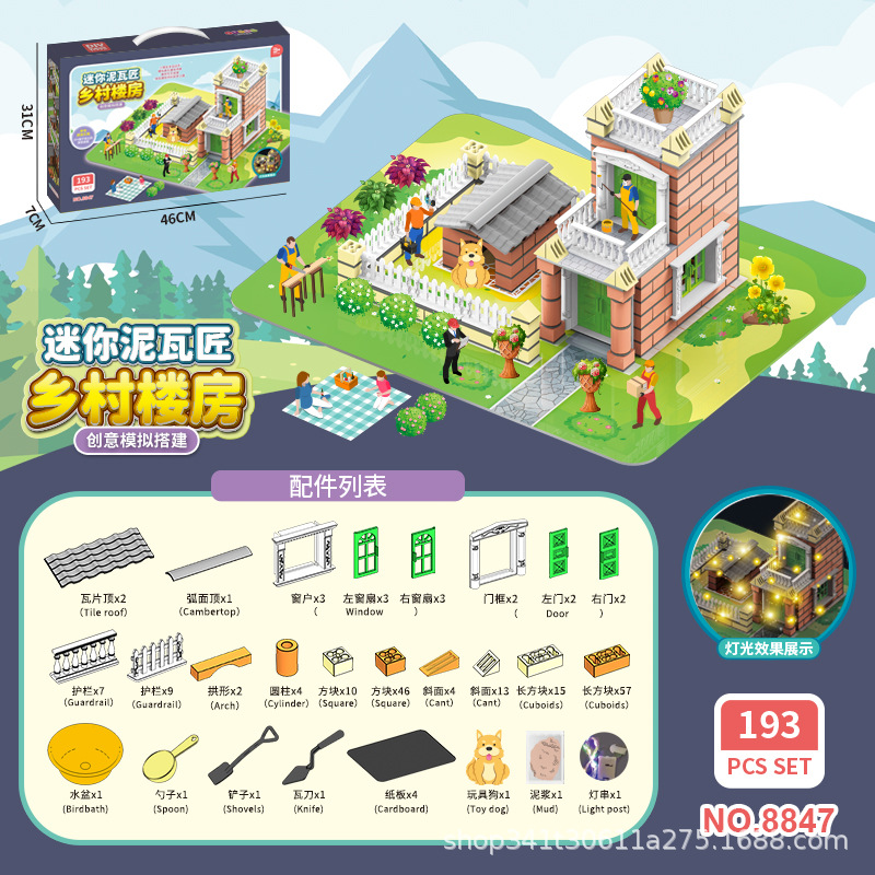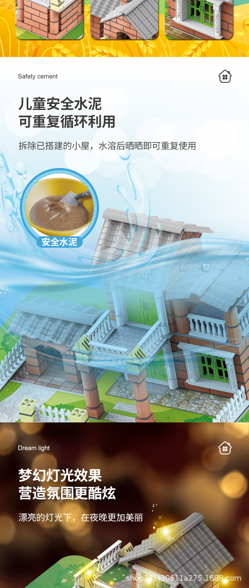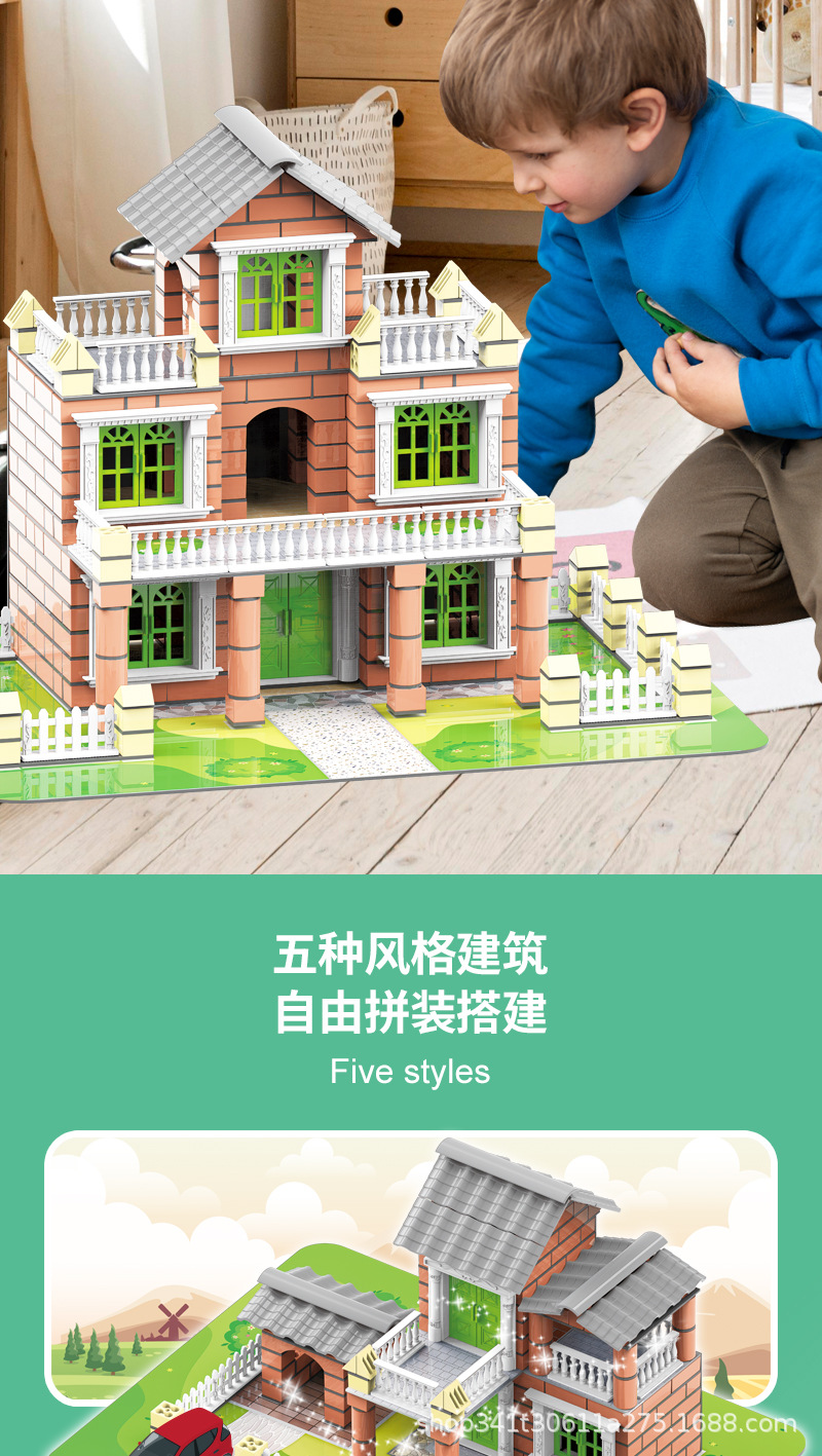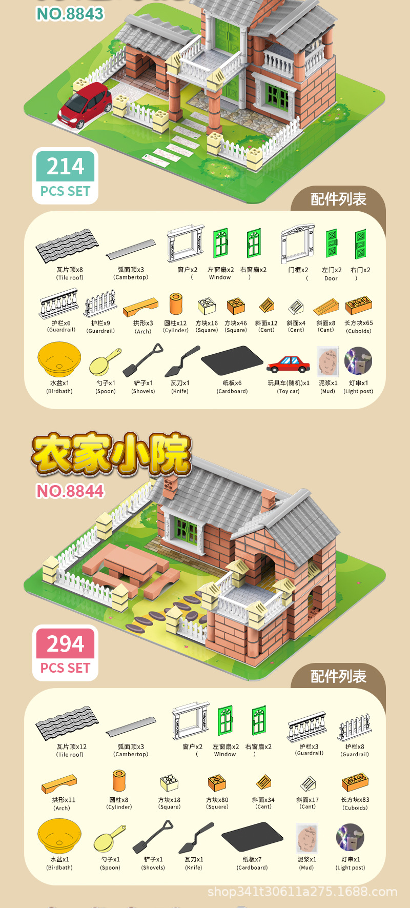어린이 활동 작은 메이슨 수제 DIY 오두막 건물 집 모래 테이블 건물 벽 건물 모델 스마트 장난감스토어 가기