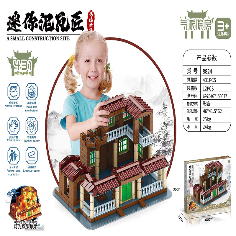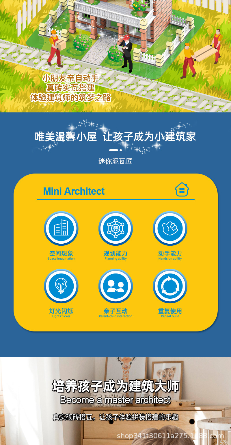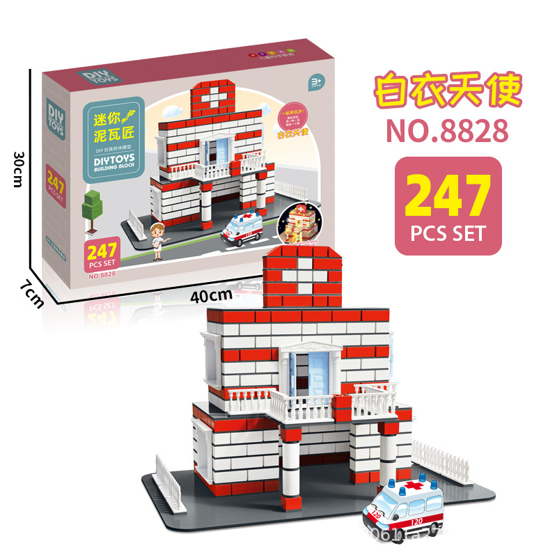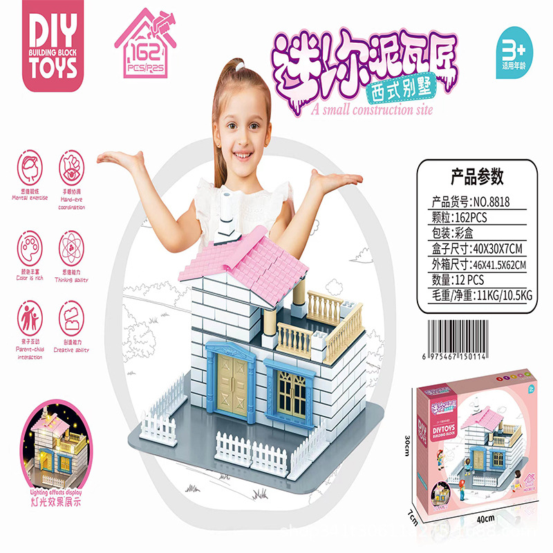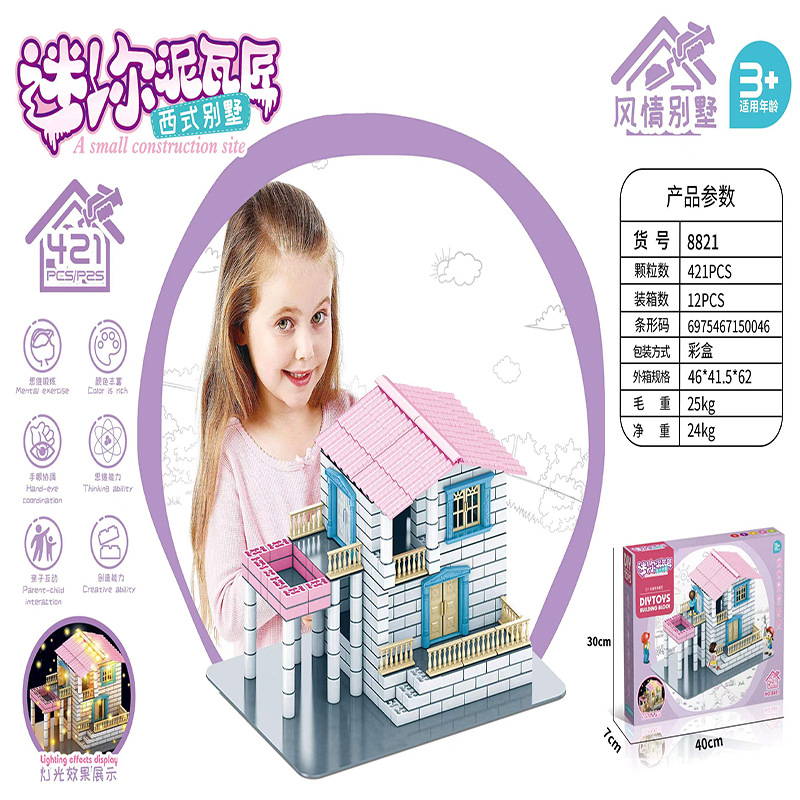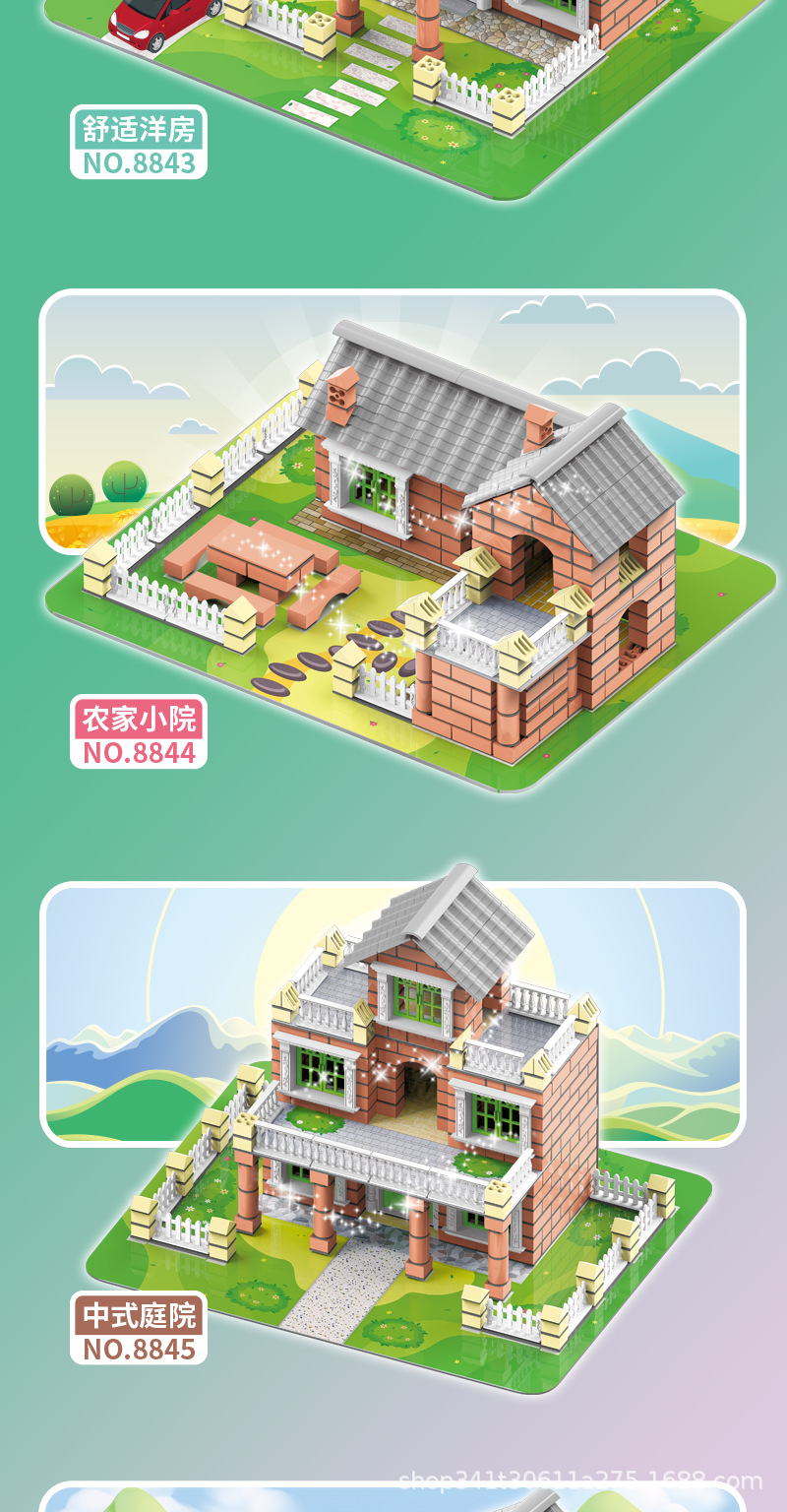 어린이 활동 작은 메이슨 수제 DIY 오두막 건물 집 모래 테이블 건물 벽 건물 모델 스마트 장난감스토어 가기