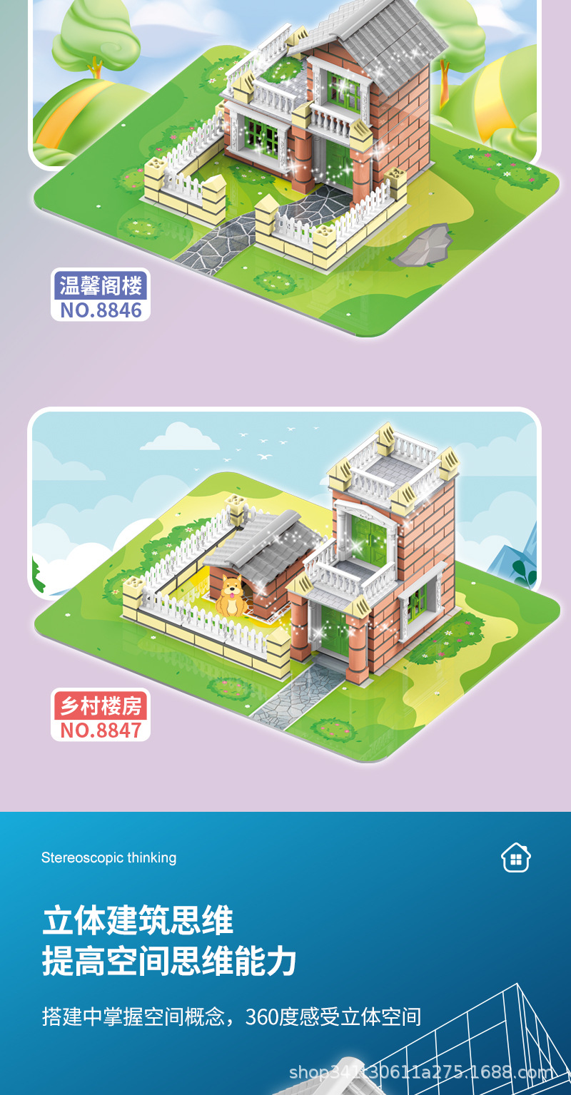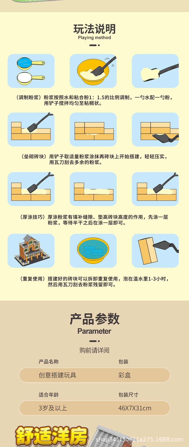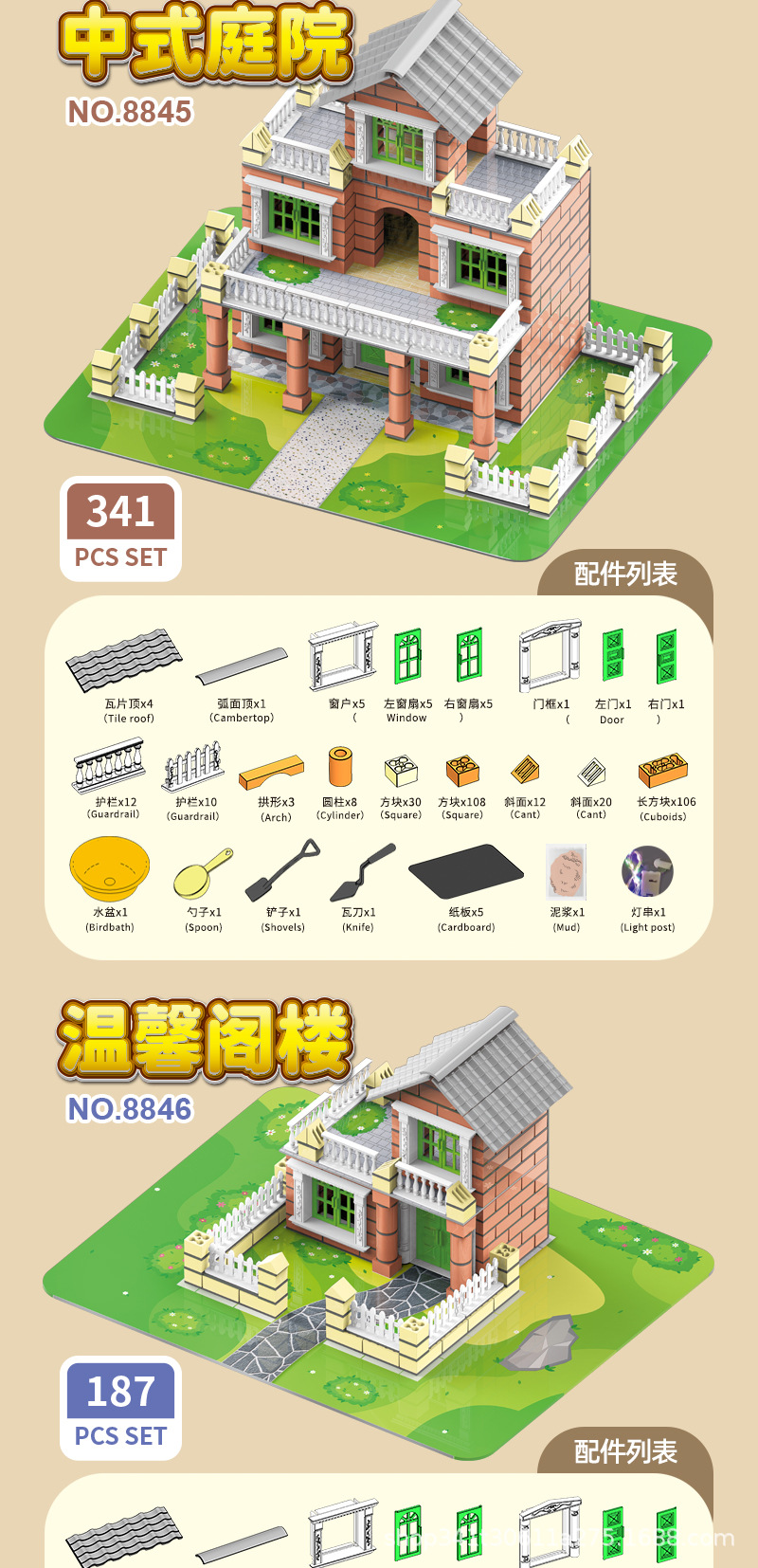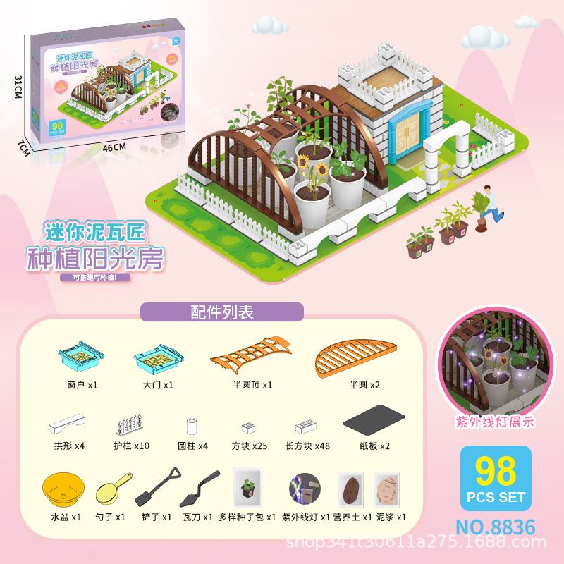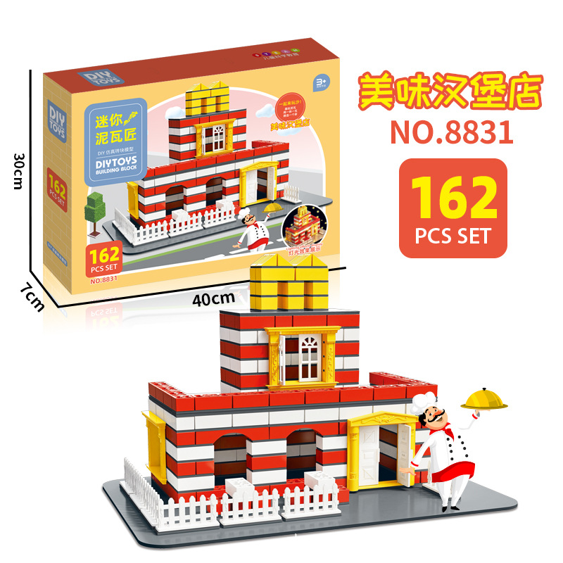어린이 활동 작은 메이슨 수제 DIY 오두막 건물 집 모래 테이블 건물 벽 건물 모델 스마트 장난감스토어 가기