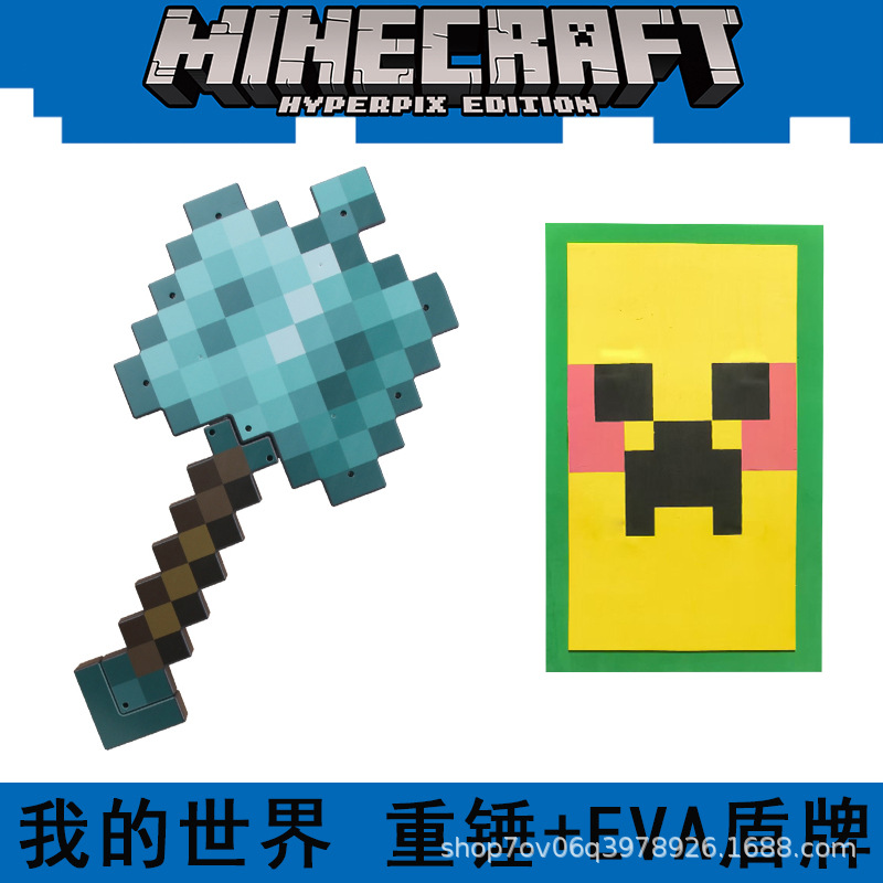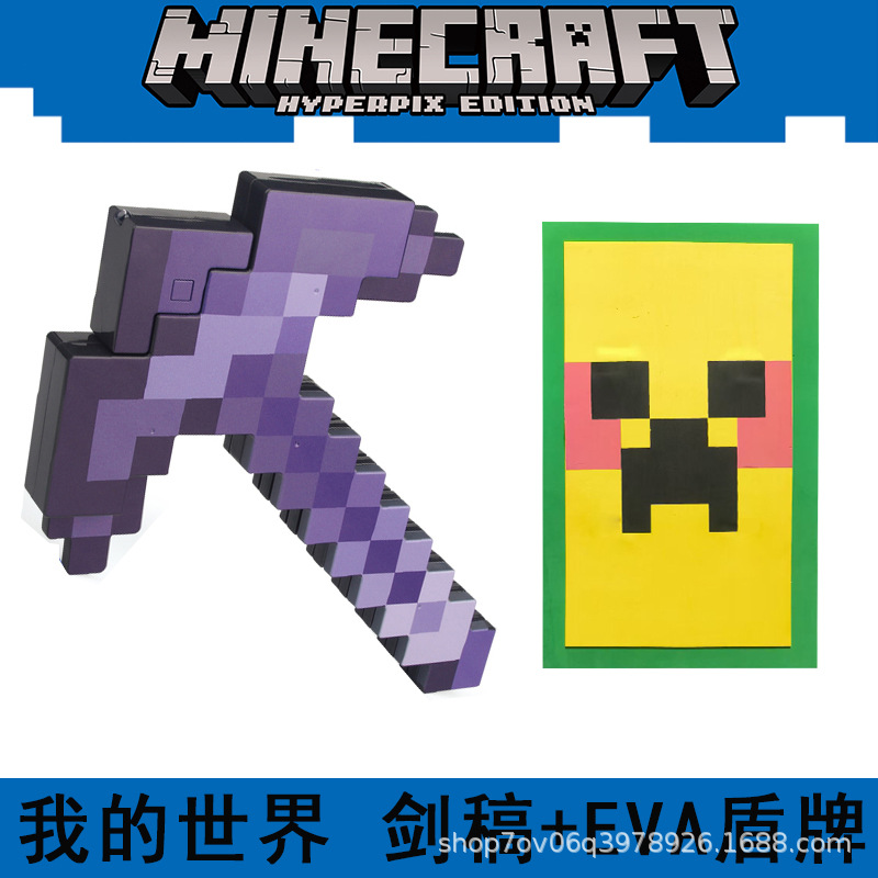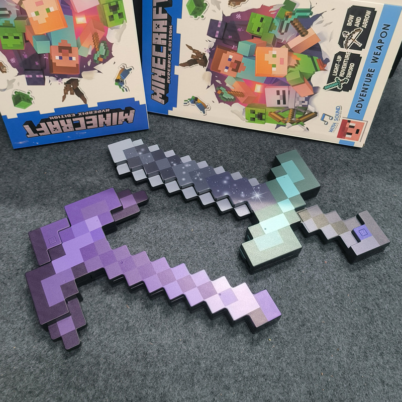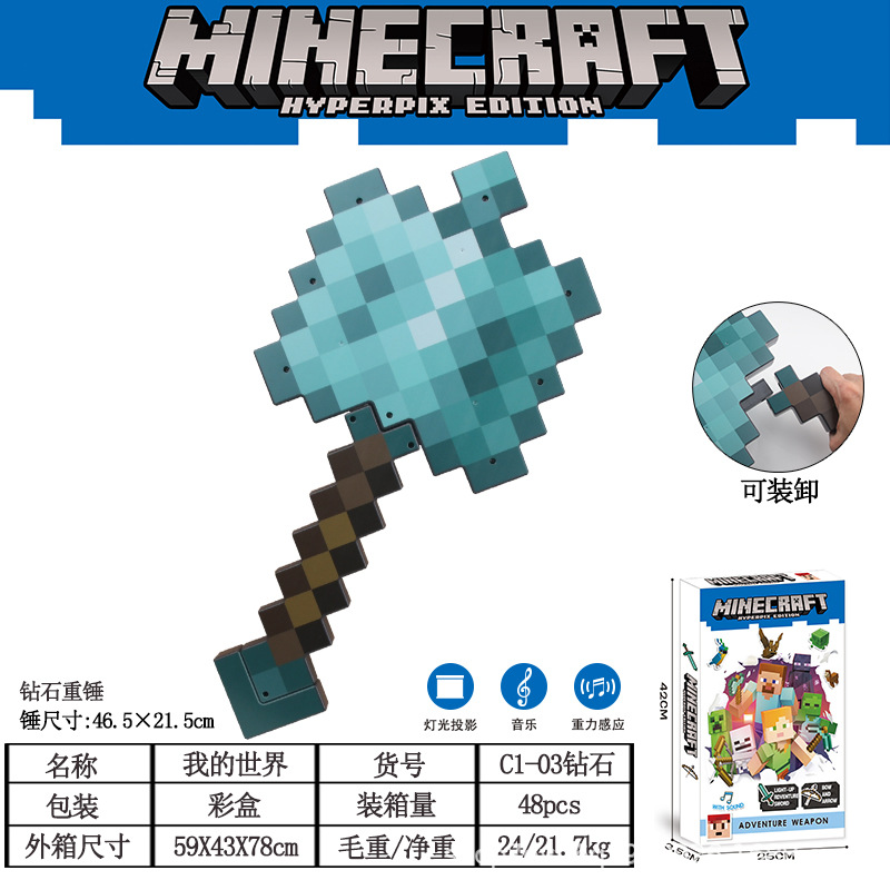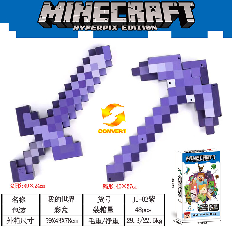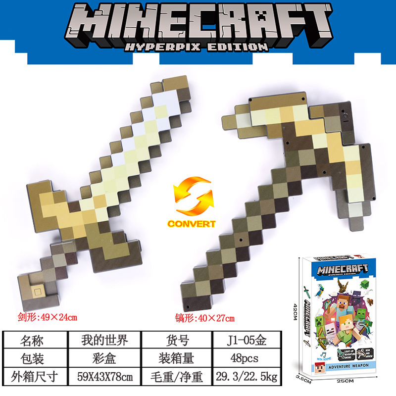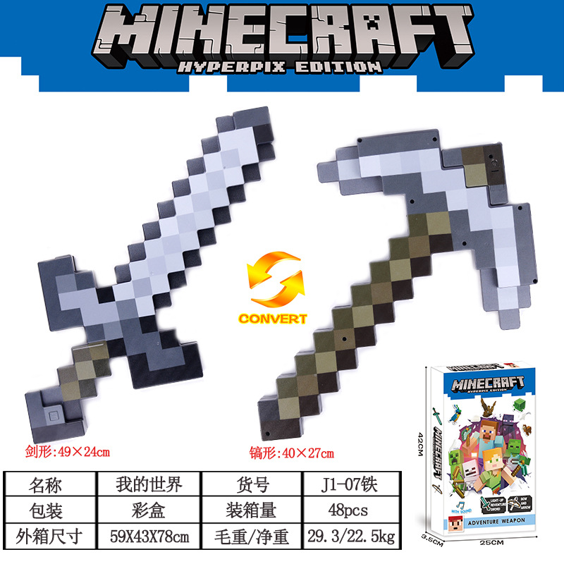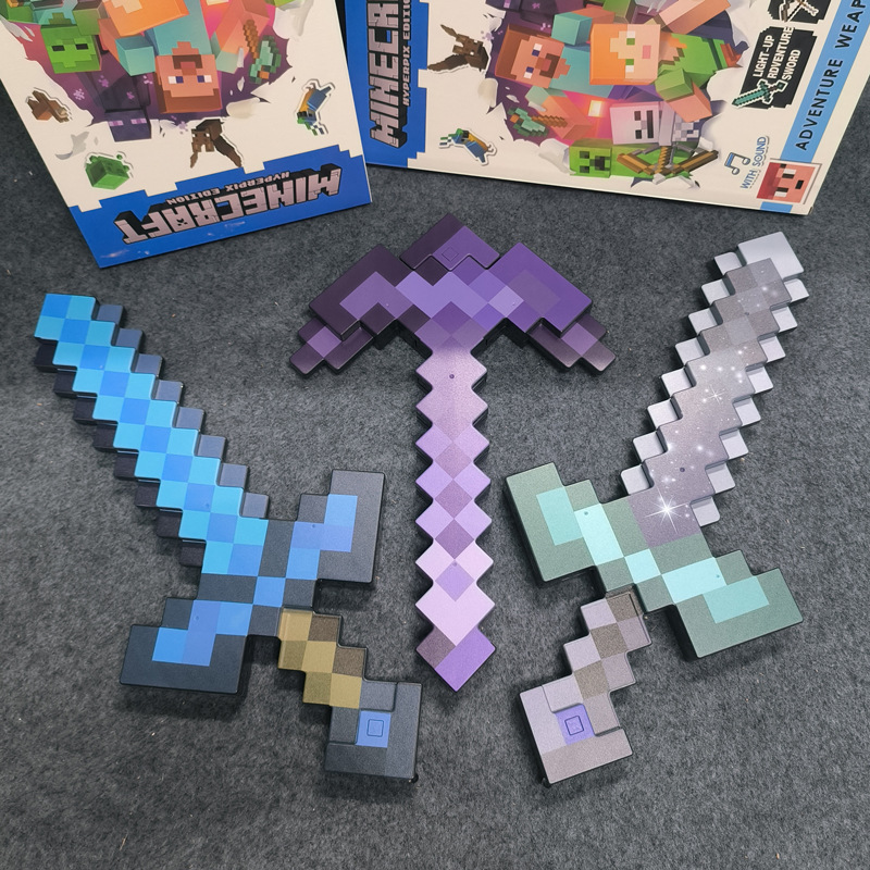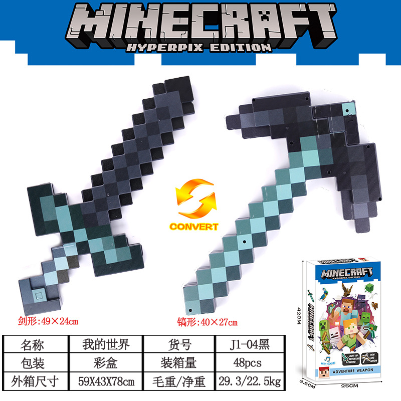 Minecraft Minecraft 소품 검 도끼 플라스틱 변형 다이아몬드 검 투인원 어린이 장난감 무기 모델