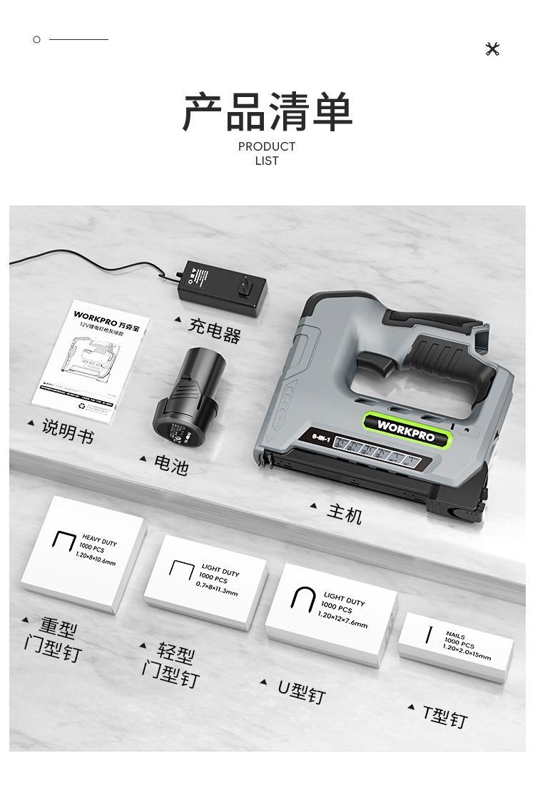 • F15 듀얼 전기 모델 [6-in-1 강력한 12V] 무료 못 4000개_긴 배터리 수명 [지속적인 못 박기]