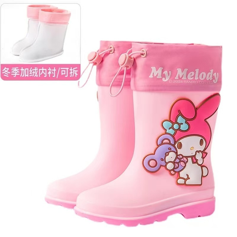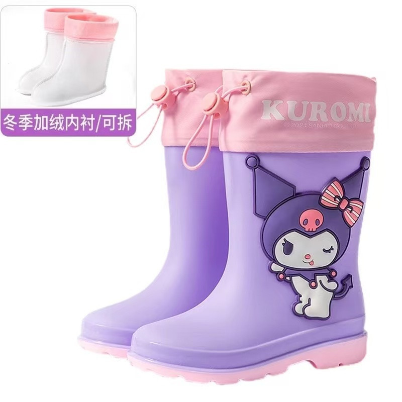 산리오 어린이 장화 여아 유치원 초등학생 귀여운 만화 두꺼운 밑창 덧신 쿠로미 미끄럼 방지