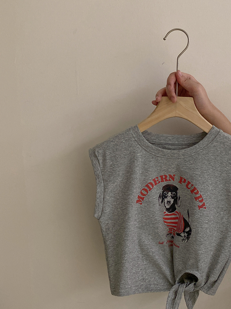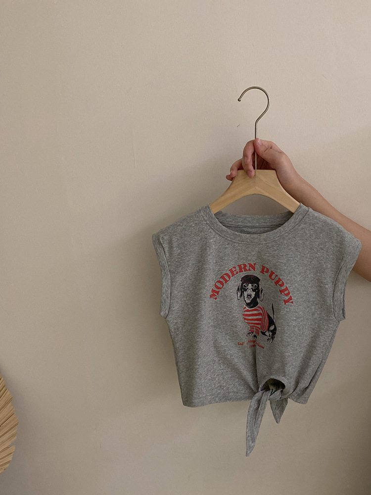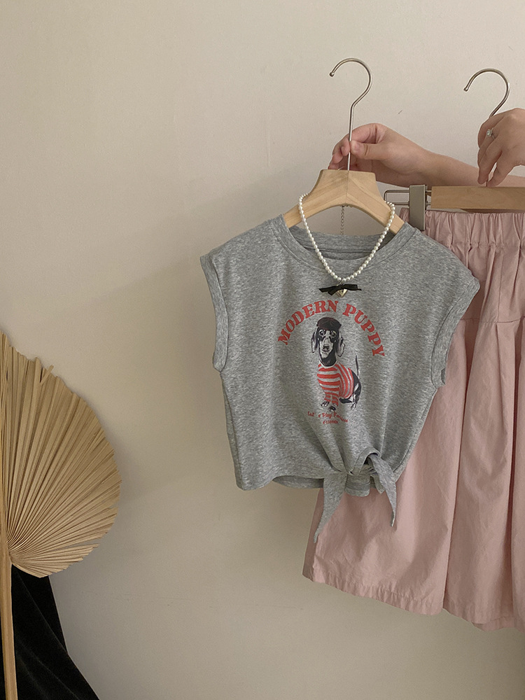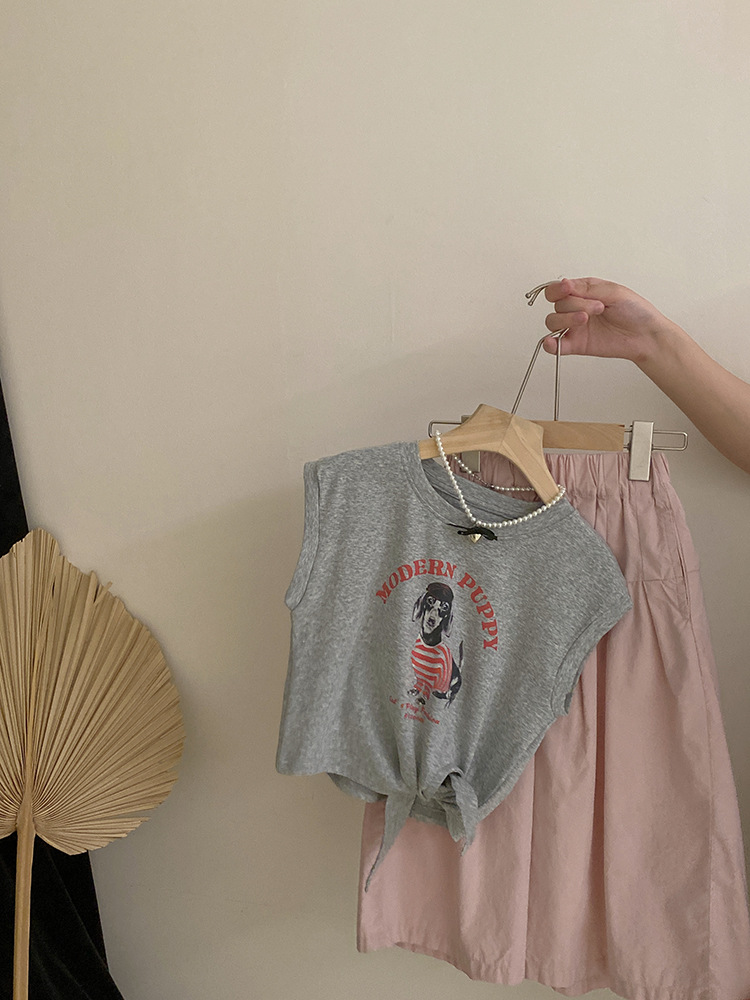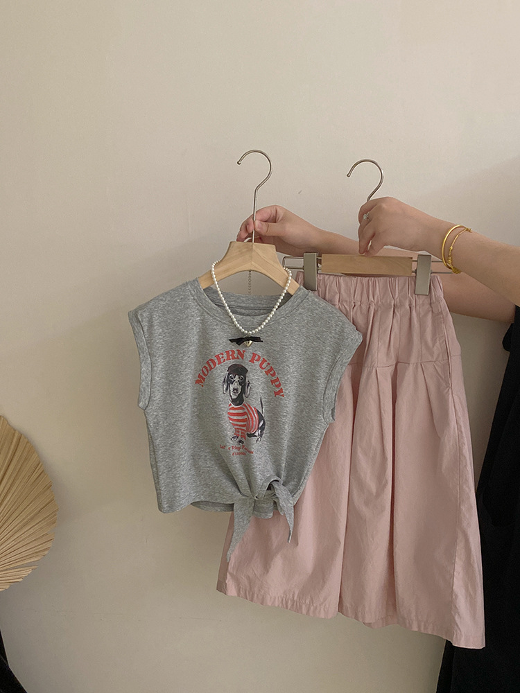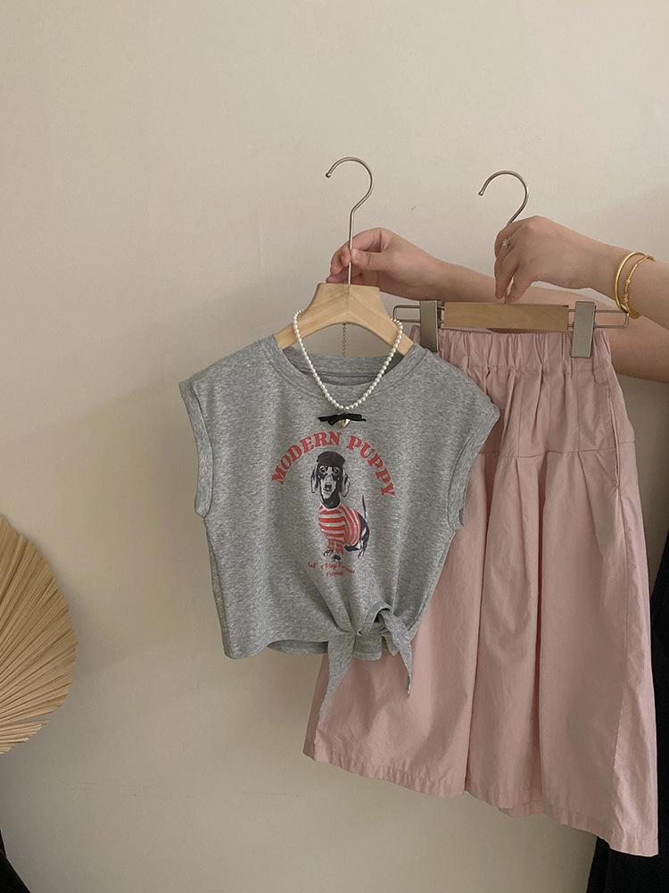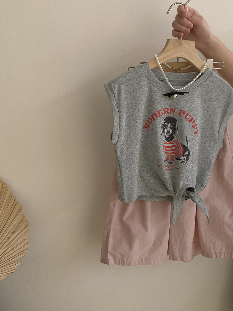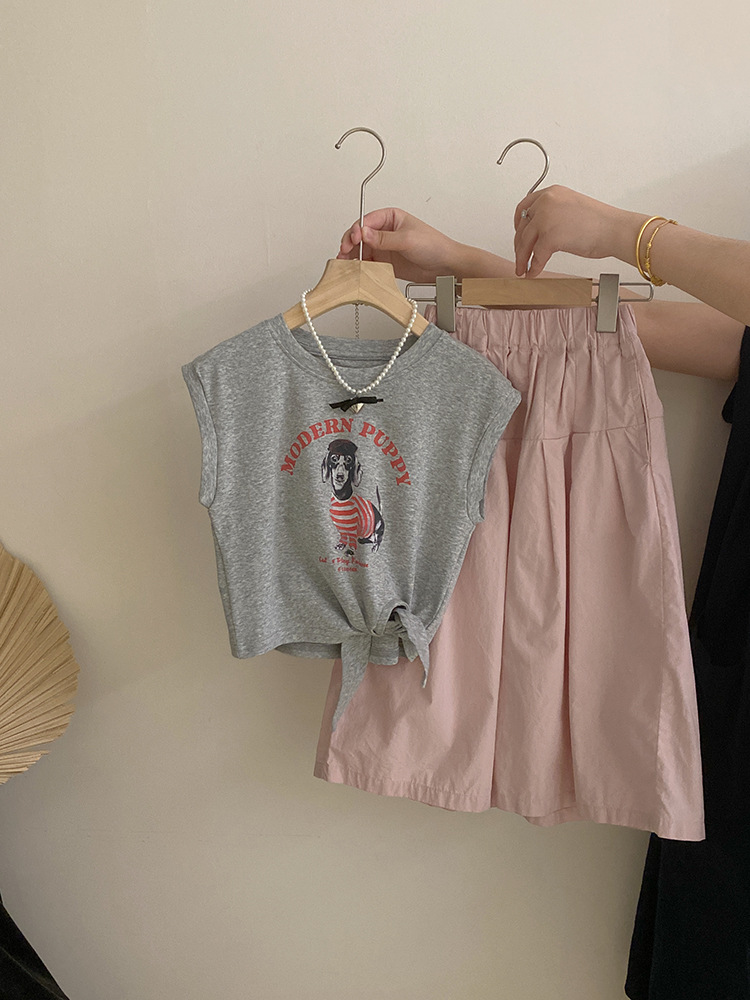 한국 스타일 소녀의 인쇄 된 편지 강아지 민소매 티셔츠 2025 여름 새로운 느슨한 캐주얼 와이드 레그 바지 투피스 세트