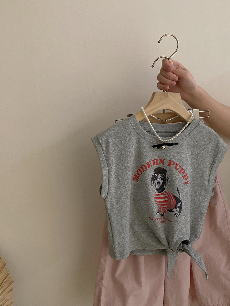 한국 스타일 소녀의 인쇄 된 편지 강아지 민소매 티셔츠 2025 여름 새로운 느슨한 캐주얼 와이드 레그 바지 투피스 세트스토어 가기