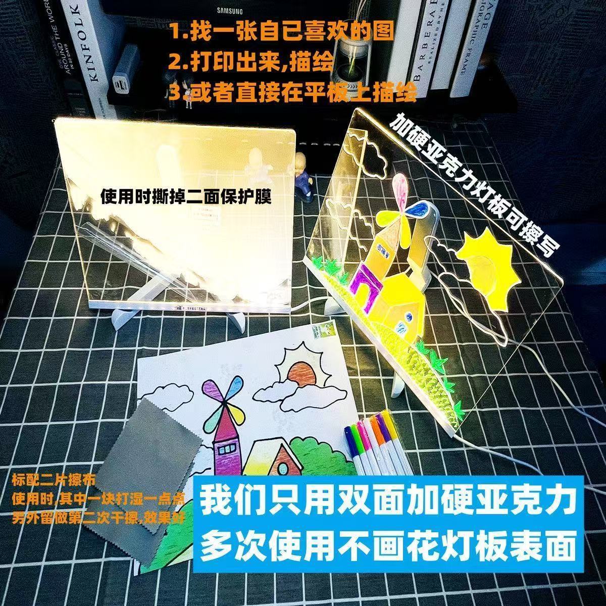 어린이 DIY 발광 드로잉 보드 아크릴 투명 쓰기 보드 메시지 보드는 발광 그림 쓰기 스톨 디스플레이 가능