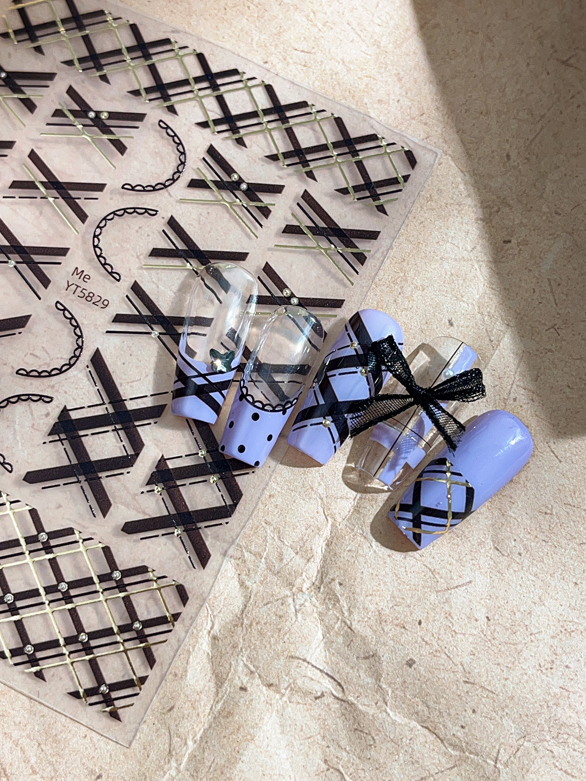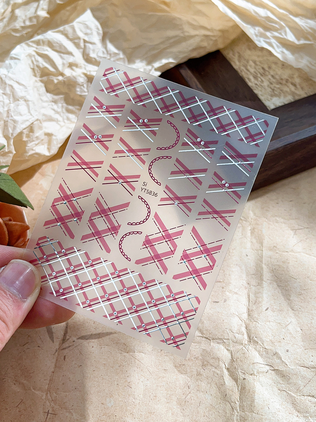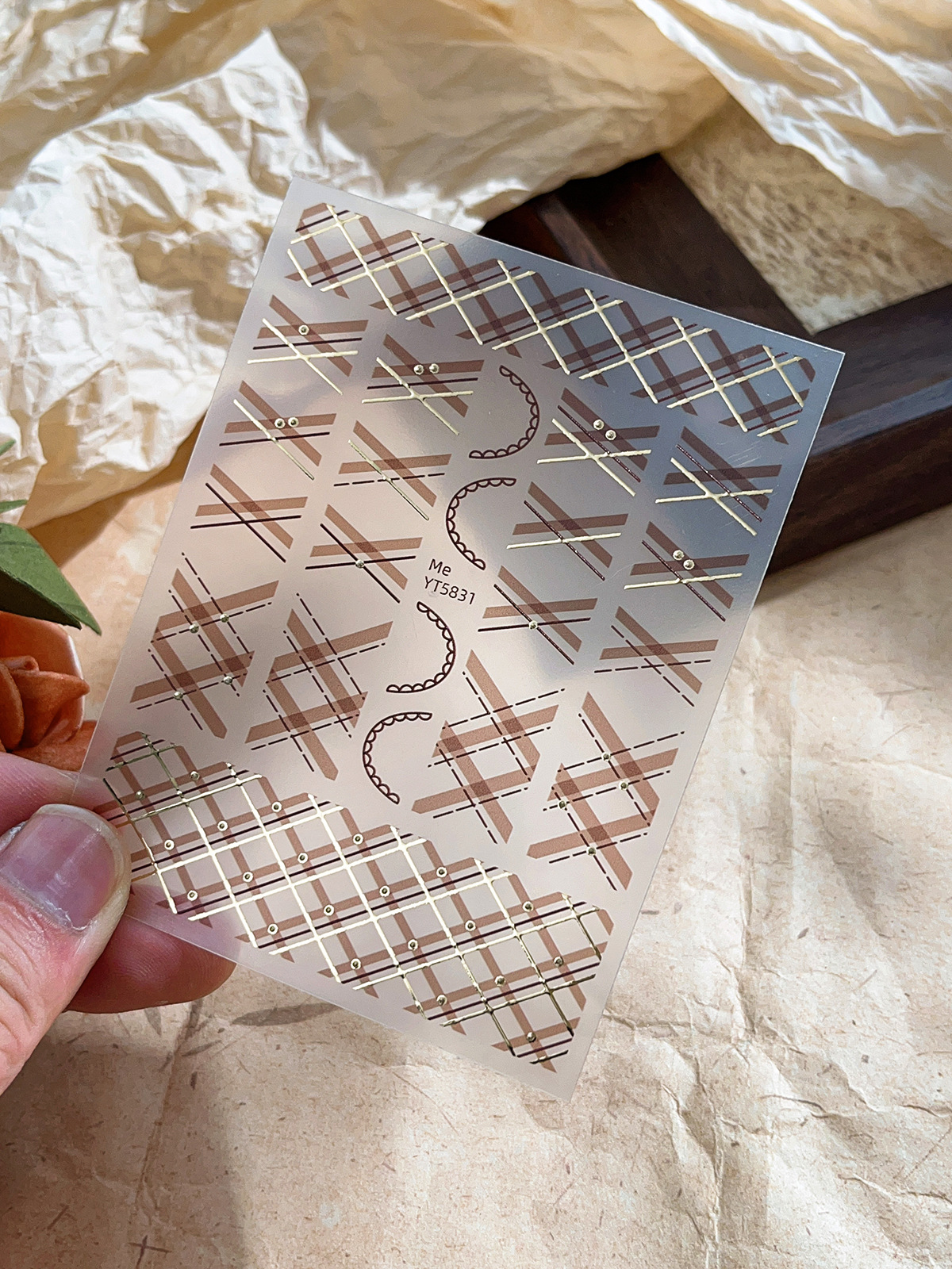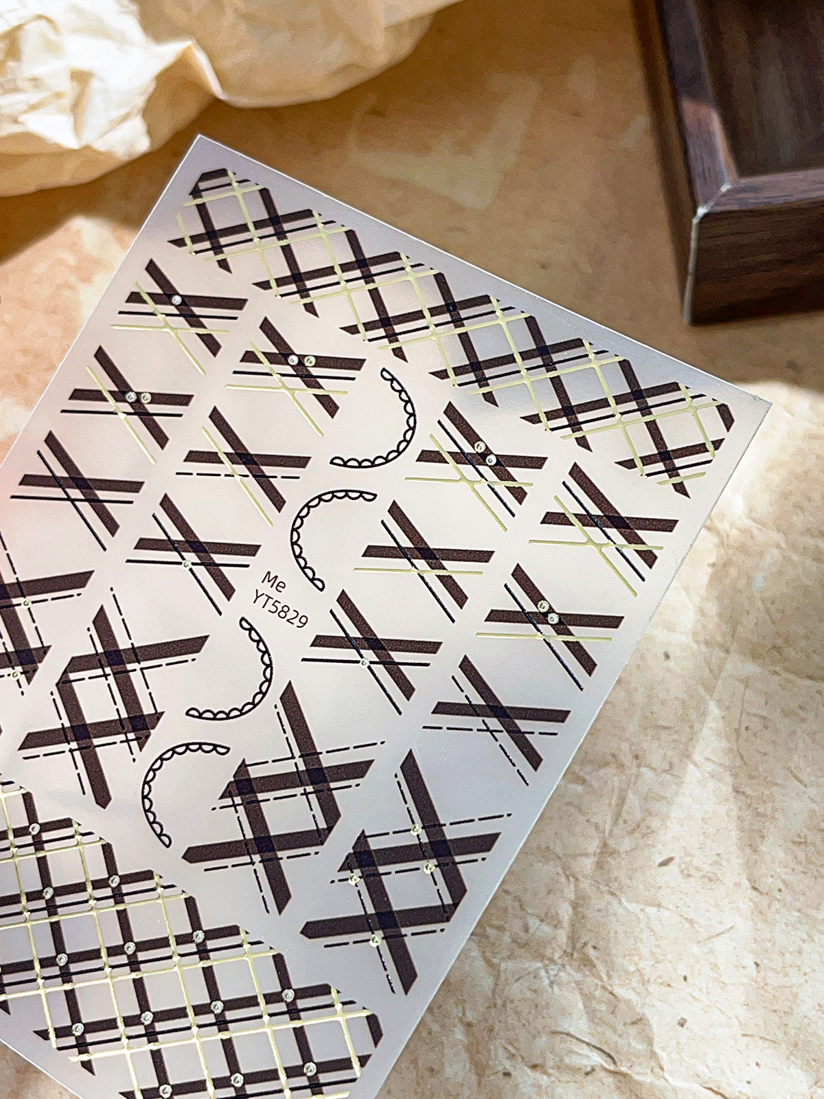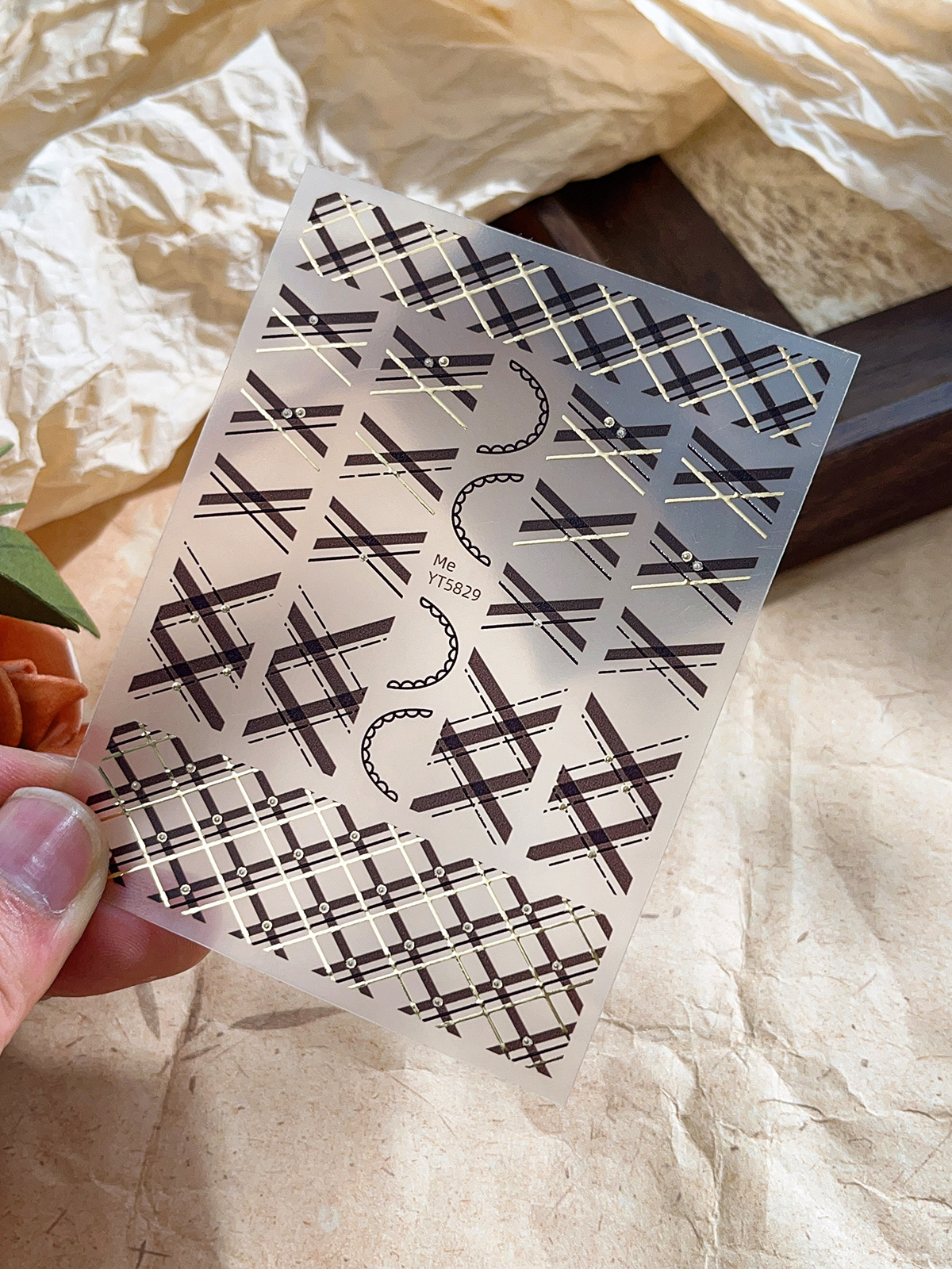 YITU Anttattoo 핫 스탬핑 격자 무늬 네일 아트 스티커 복고풍 격자 무늬 간단한 프랑스어 인터넷 연예인 장식 스티커 YT5829스토어 가기