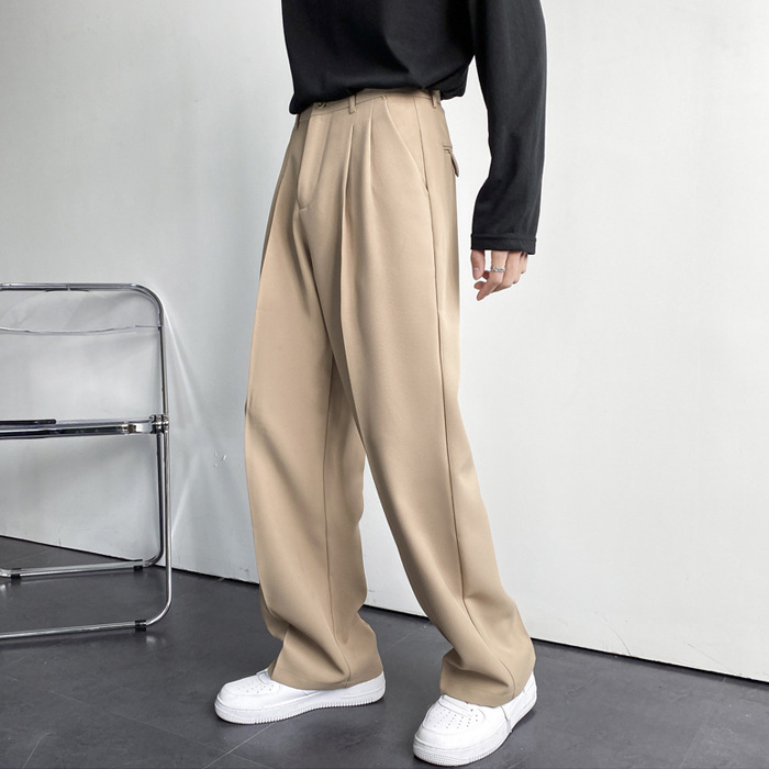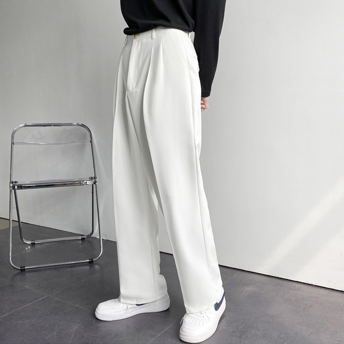 홍콩 스타일의 얇은 펜던트 바지 남자 9 점 느슨한 스트레이트 바지 캐주얼 와이드 레그 화이트 바지