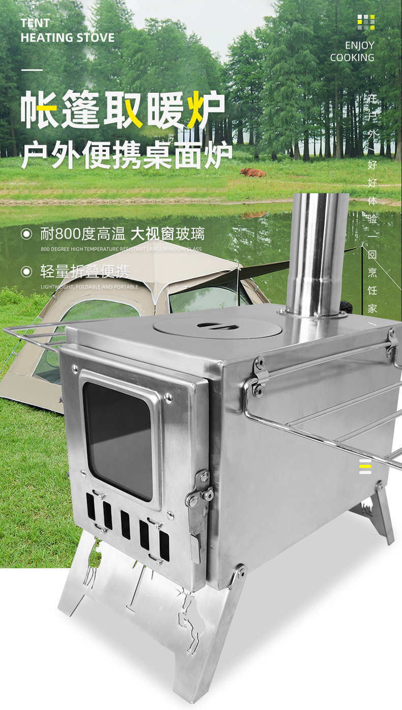 야외 캠핑 일체형 스테인레스 스틸 데스크탑 스토브 캠핑 텐트 난방 장작 스토브 야외 자율 주행 휴대용 스토브